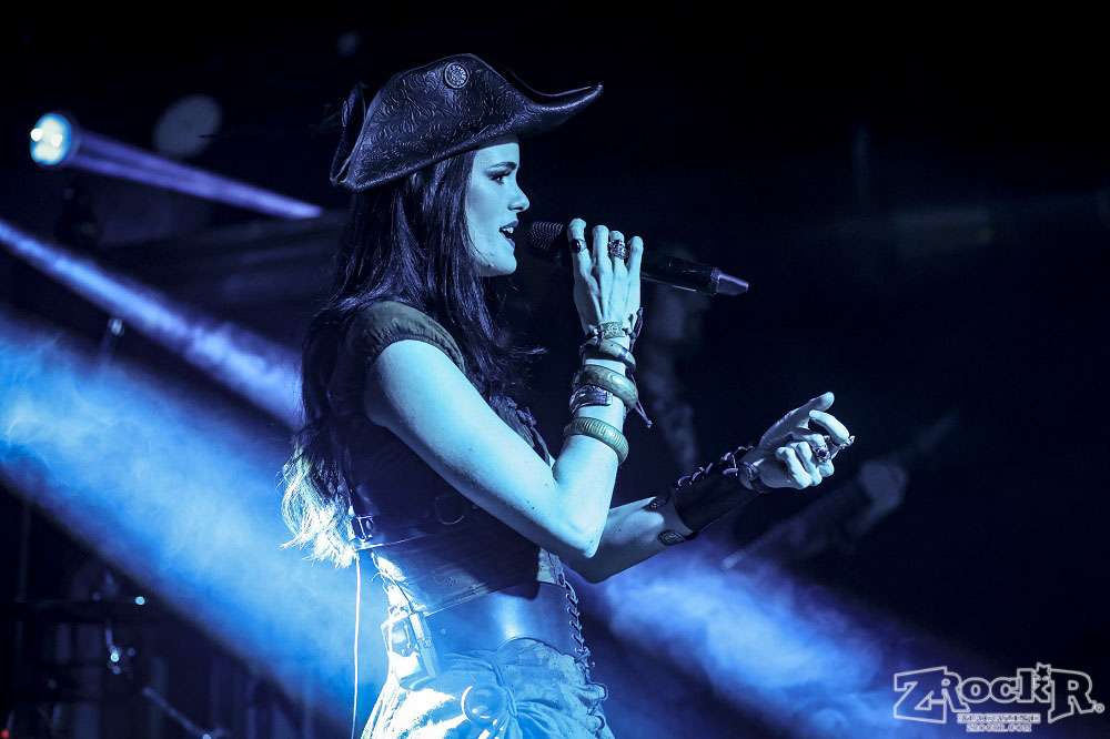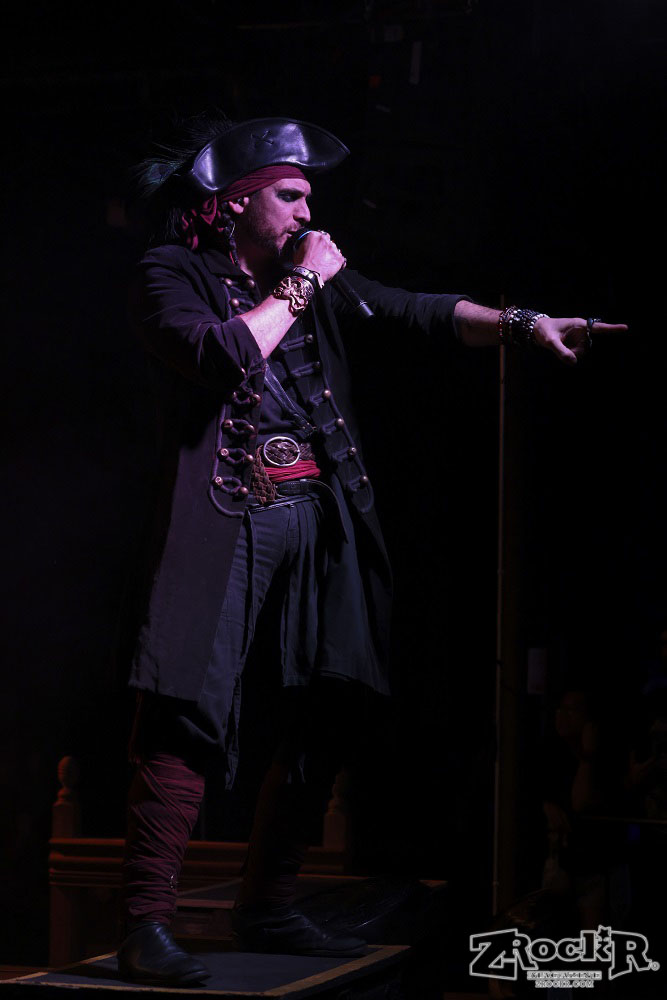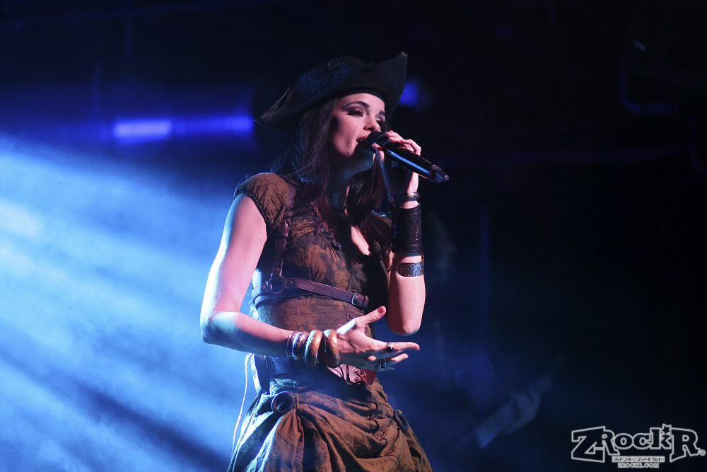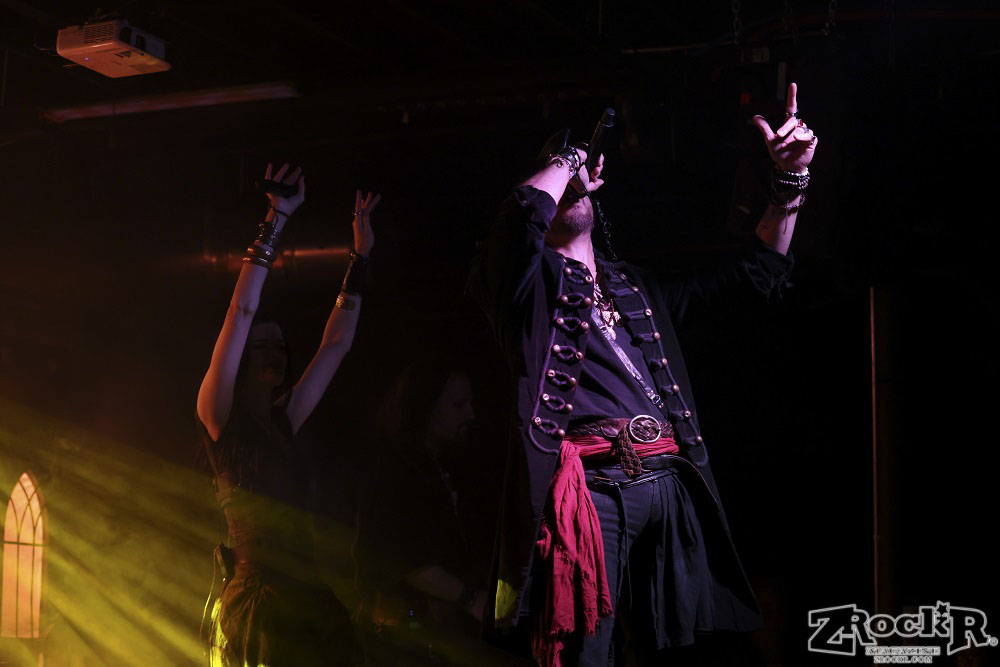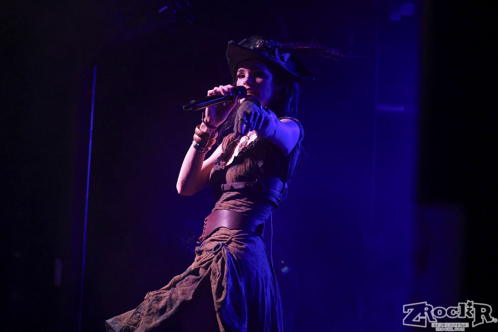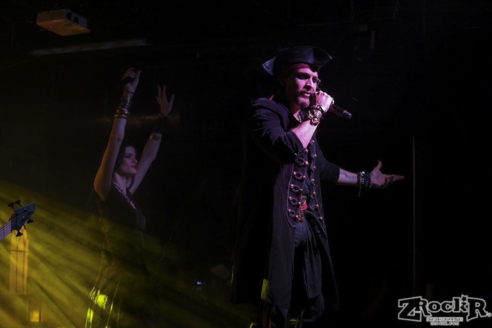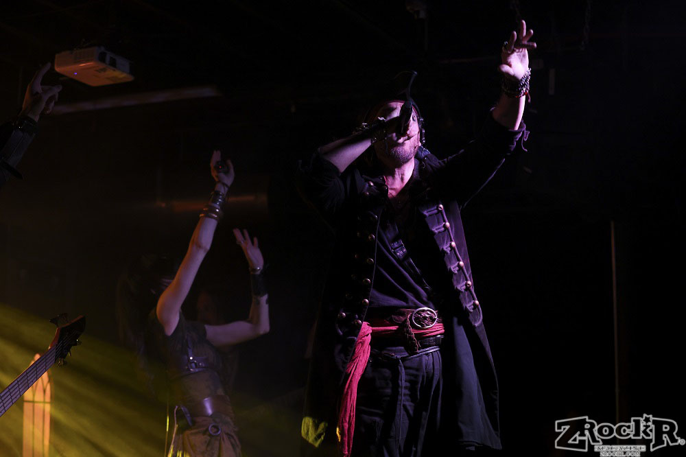 Visions of Atlantis themselves are made up of French, Italian, and Austrian musicians. Clémentine Delauney (vocals) opened their set with a stunning silhouette in her full pirate glory. Sharing vocal duties with her is Michele Guaitoli, whose powerful voice perfectly balances hers. On guitars is Christian Douscha, bringing the riffs and energy to the stage, while Herbert Glos holds down the low end on bass. Thomas Caser, one of the founding members, absolutely crushes it on drums. With all the props on stage, I do wish they had a little more room to move around, but they made it work like true professionals.