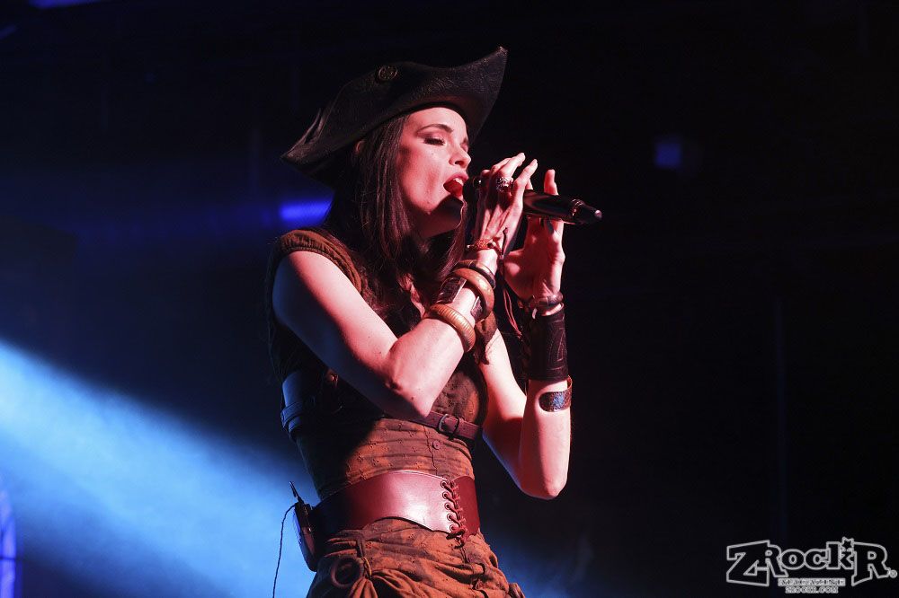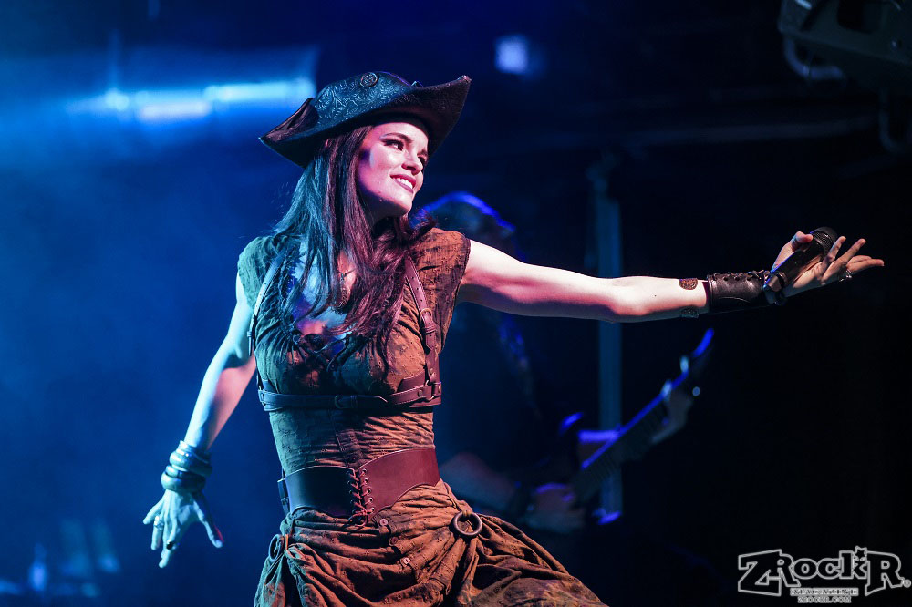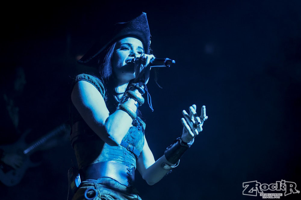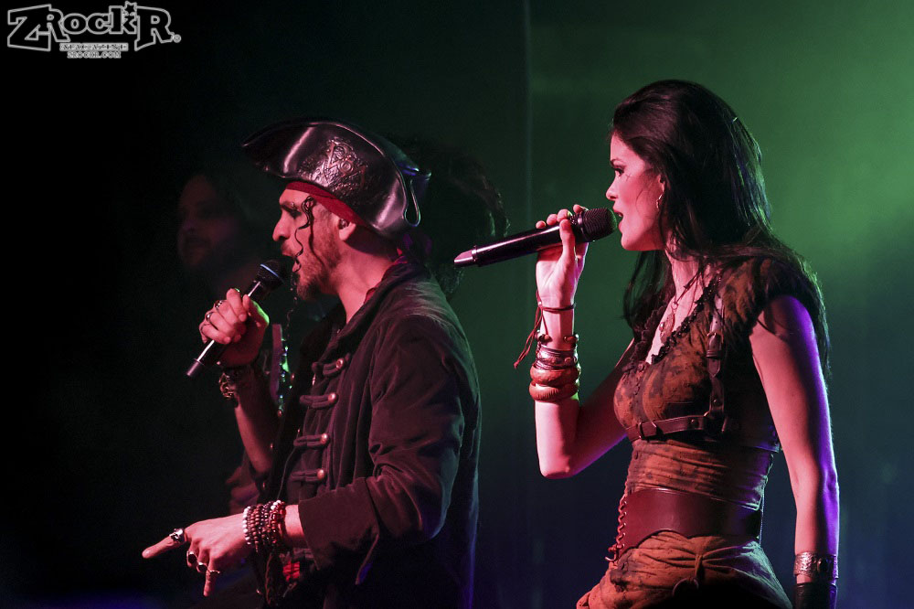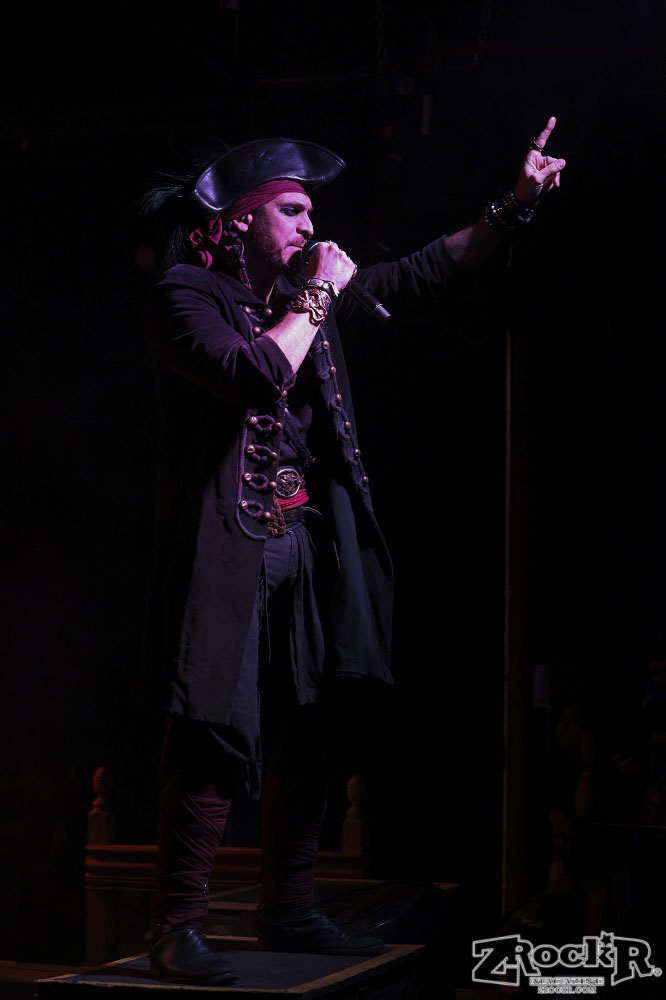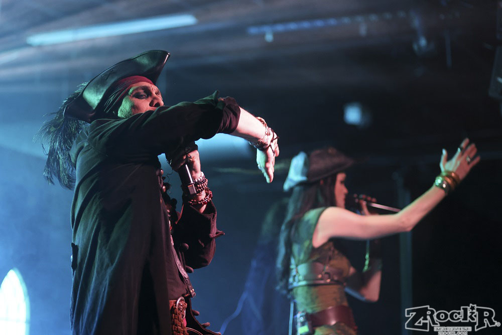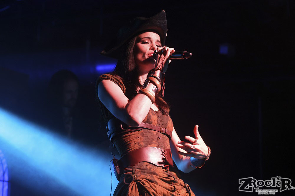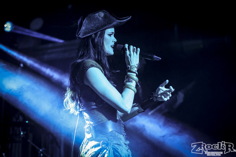 Visions of Atlantis themselves are made up of French, Italian, and Austrian musicians. Clémentine Delauney (vocals) opened their set with a stunning silhouette in her full pirate glory. Sharing vocal duties with her is Michele Guaitoli, whose powerful voice perfectly balances hers. On guitars is Christian Douscha, bringing the riffs and energy to the stage, while Herbert Glos holds down the low end on bass. Thomas Caser, one of the founding members, absolutely crushes it on drums. With all the props on stage, I do wish they had a little more room to move around, but they made it work like true professionals.