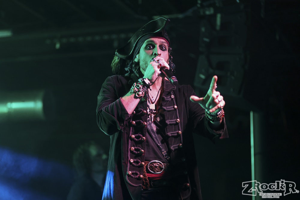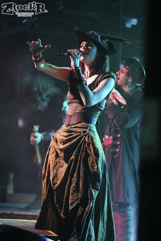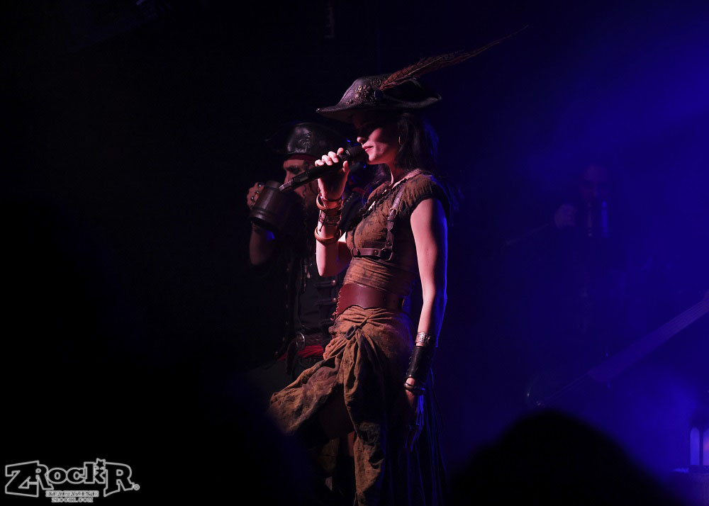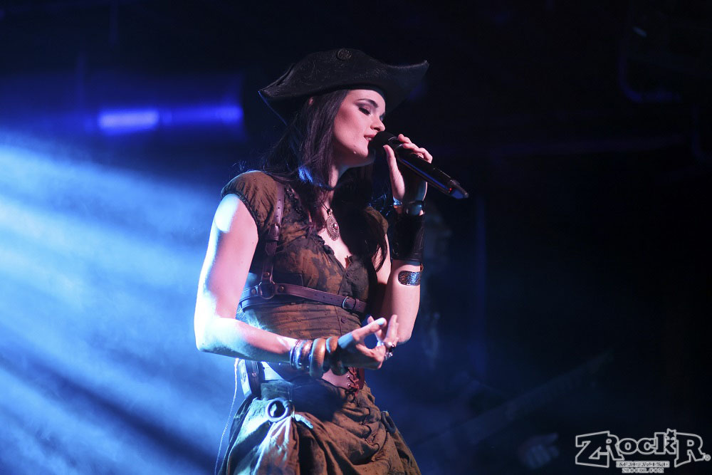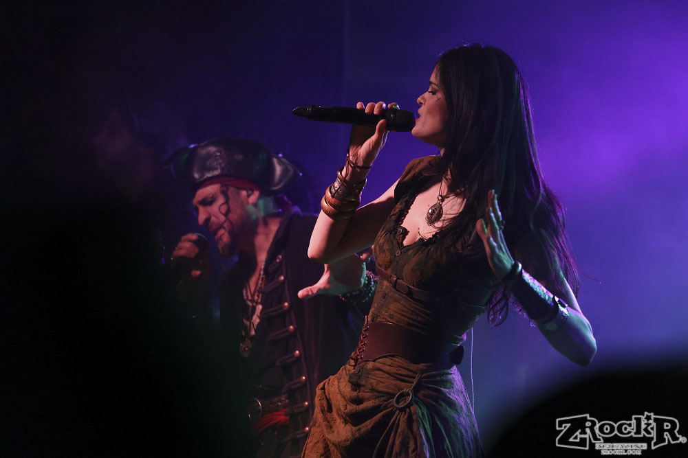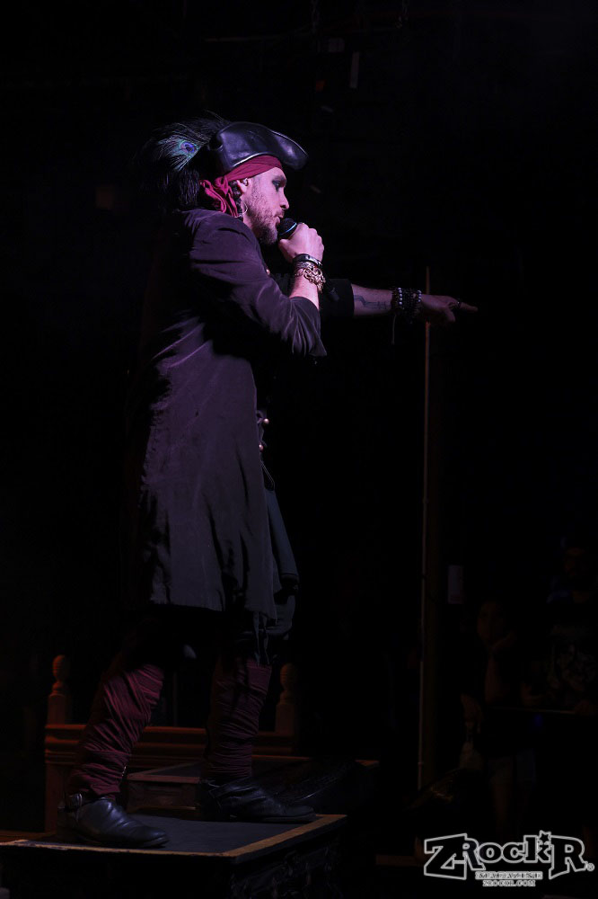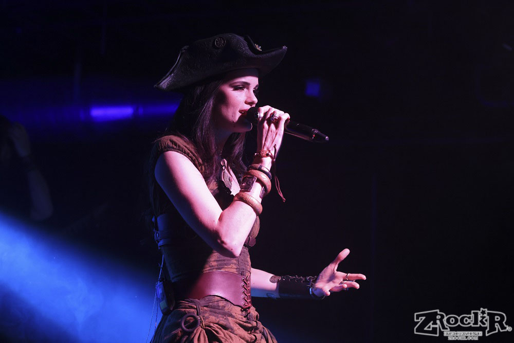 Visions of Atlantis themselves are made up of French, Italian, and Austrian musicians. Clémentine Delauney (vocals) opened their set with a stunning silhouette in her full pirate glory. Sharing vocal duties with her is Michele Guaitoli, whose powerful voice perfectly balances hers. On guitars is Christian Douscha, bringing the riffs and energy to the stage, while Herbert Glos holds down the low end on bass. Thomas Caser, one of the founding members, absolutely crushes it on drums. With all the props on stage, I do wish they had a little more room to move around, but they made it work like true professionals.