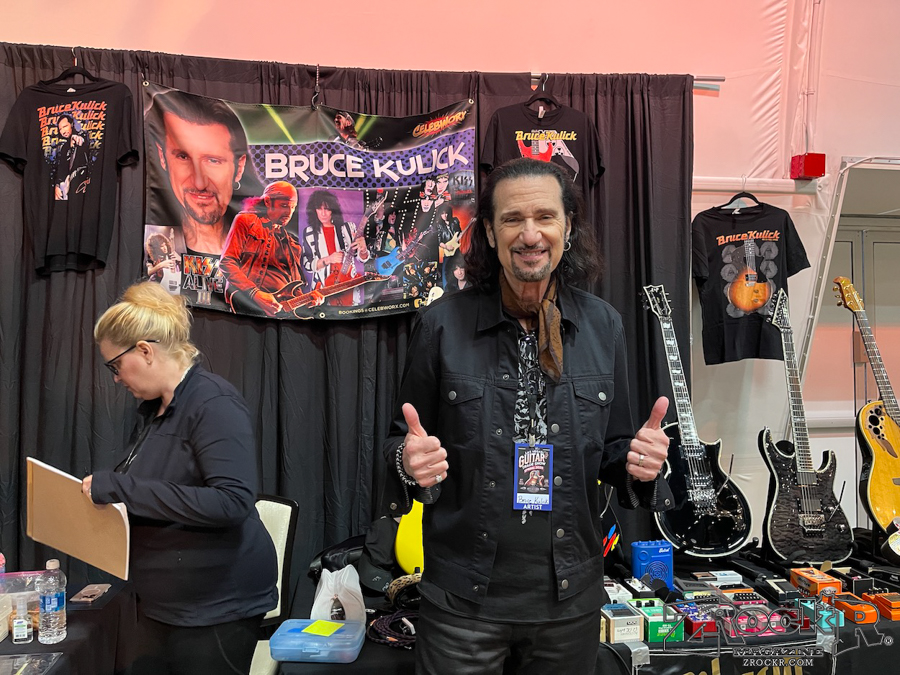 -Legendary former KISS guitarist Bruce Kulick had a booth set up, selling assorted merchandise, including shirts, photos, CDs and DVDs, and other items. I purchased an instructional DVD from the former KISS axeman, which also features his late brother Bob. Many of his guitars on display were quite spectacular, including one with art of him from the 1985 ASYLUM album art; his first album with KISS.