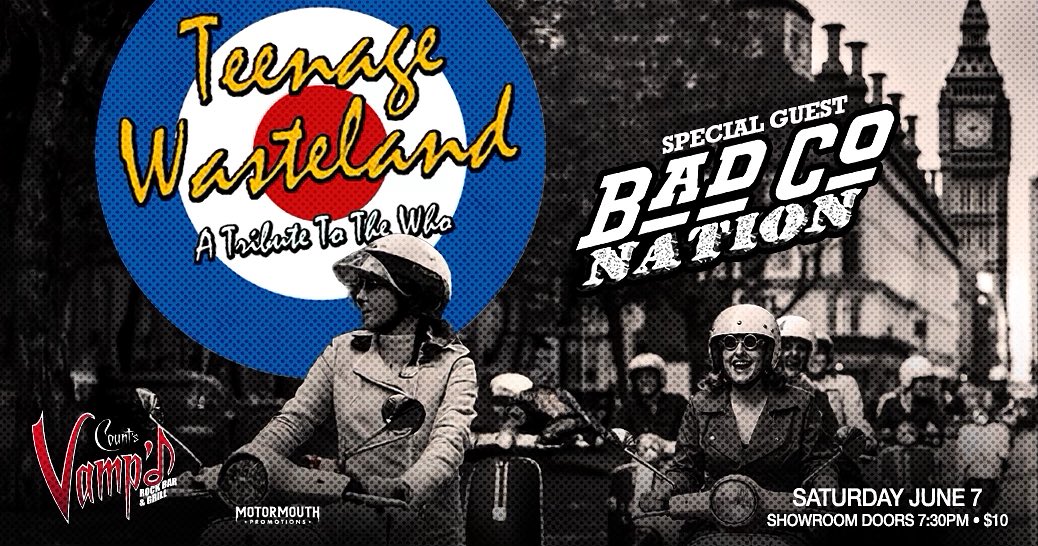 Teenage Wasteland played Count’s Vamp’d on Saturday, June 7, 2025, with support act Bad Co Nation.