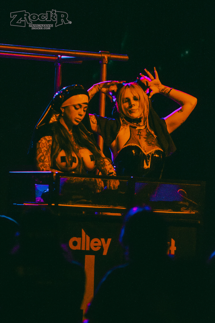 As I entered the door to the venue, DJ Alleykat was already spinning some dark wave beats for the growing crowd. Her set was a perfect introduction to the evening for two reasons: first, it eased me into the kind of music I’d be hearing. Second, because I wasn’t expecting to see a pregnant, half naked nun donning pasties and latex the very second I walked in the door. In hindsight? She pretty much warned me what was to come, and I guess I wasn’t really paying attention. The music was awesome, though, and half way through her set she invited audience member and local performance artist, Savannah Andie, on stage to dance with her.