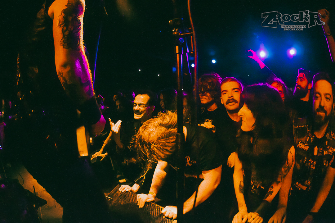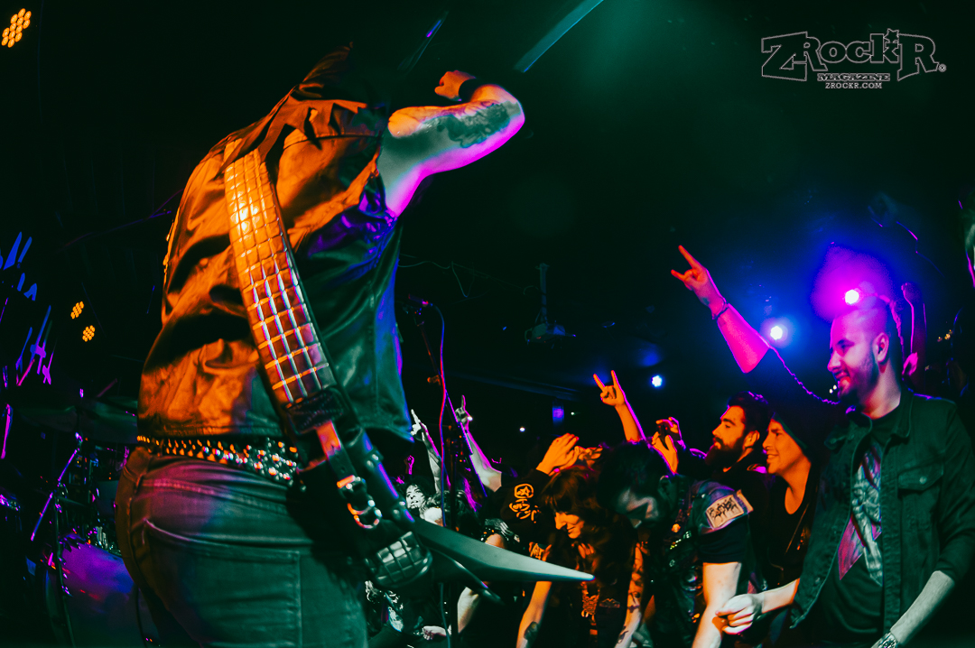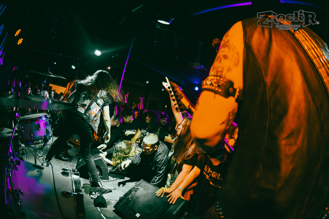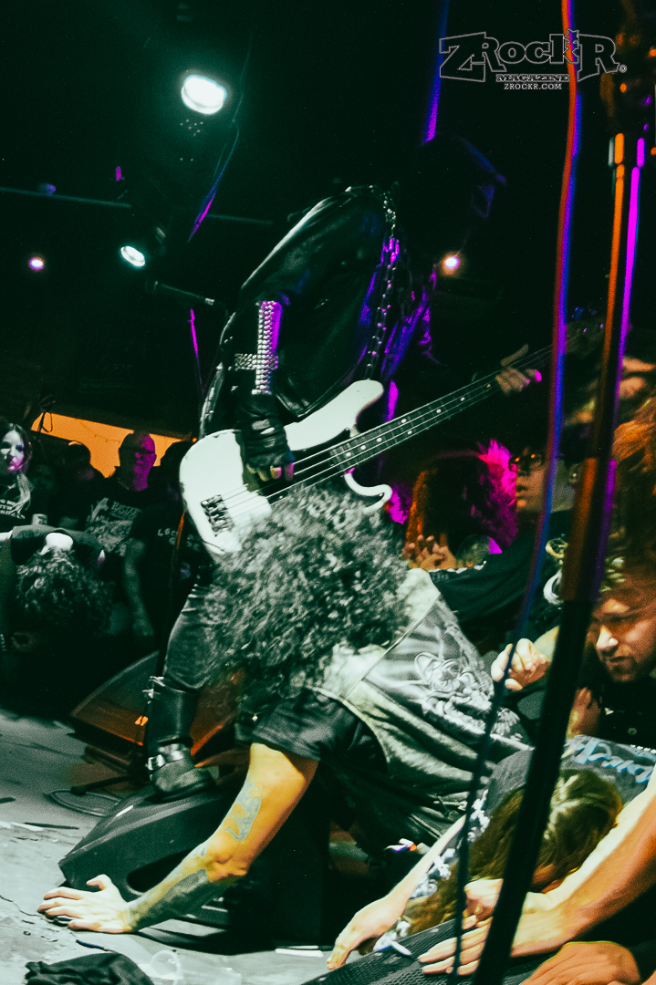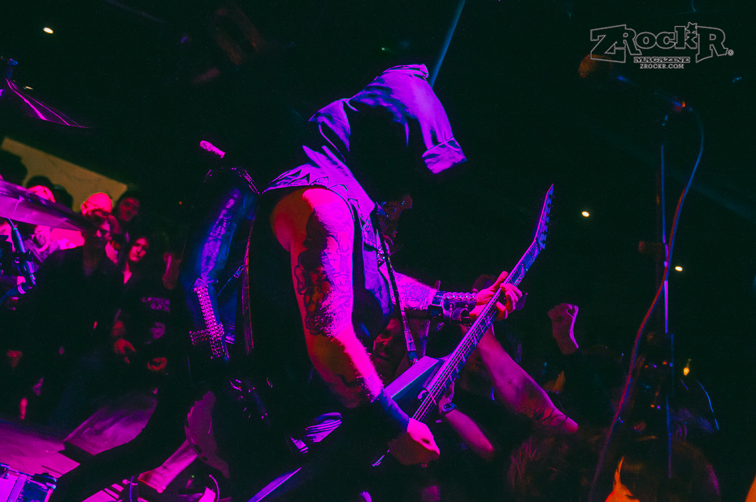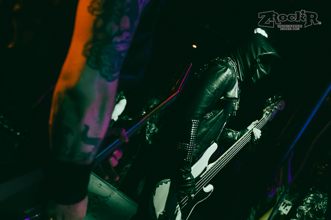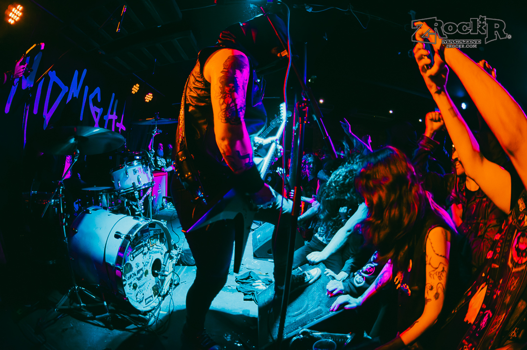 Midnight cut the lights and played cathedral church bells and raven screeches as they approached the stage slowly. One by one the leather-clad, hooded and masked men of the darkness grabbed their axes and played the most intense show of my life thus far. The windows were dripping in condensation because it was so hot. I was pressed against stage left and couldn’t move to get to the other side or the front even if I wanted to. People were pushing the monitors against the artists because they were being pressed into the stage because it was so packed with the moshing and everything. The show was absolute chaos – and it was beautiful. Midnight played a lot of their hits, and some songs off of their album, but the most impactful thing that they did was playing an Ozzy Osbourne before playing anything else. The second they hit the stage the group played “Suicide Solution,” and gave a mention to the prince of darkness before running straight into a personal favorite of mine, “Nuclear Savior”.