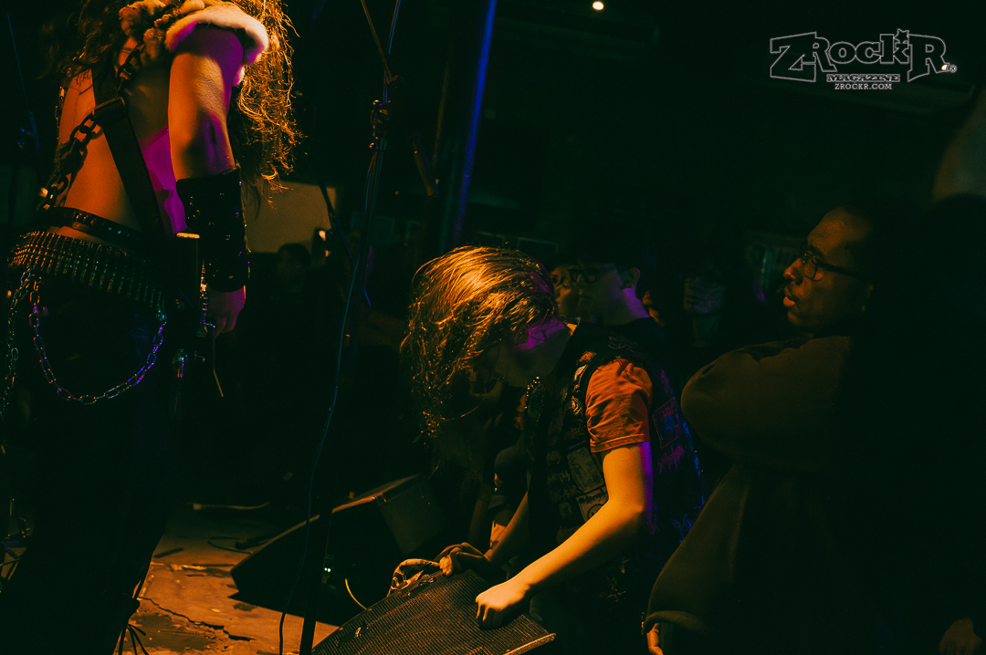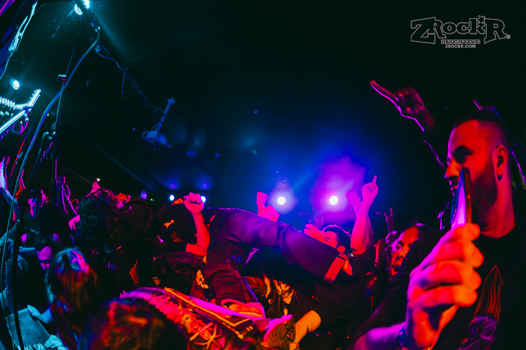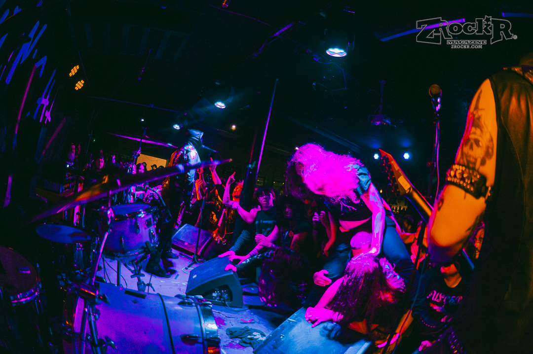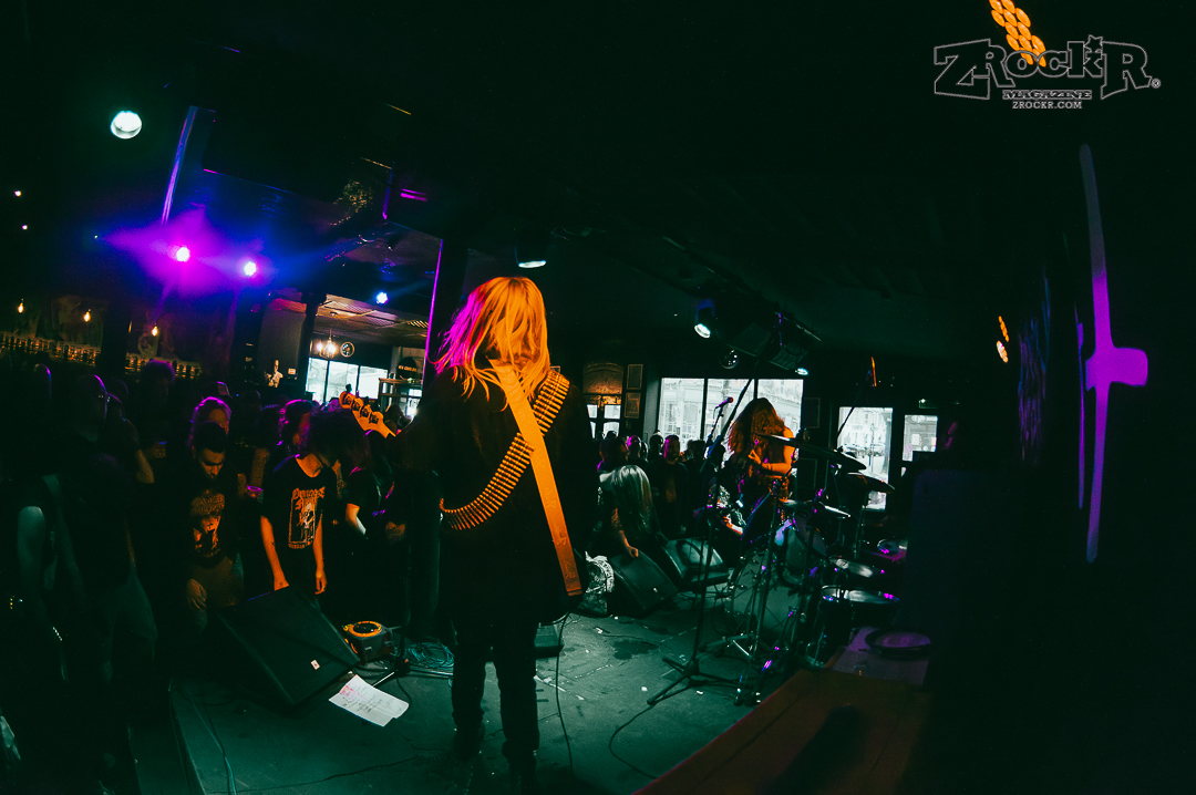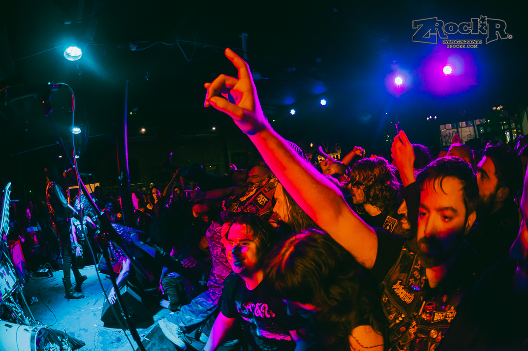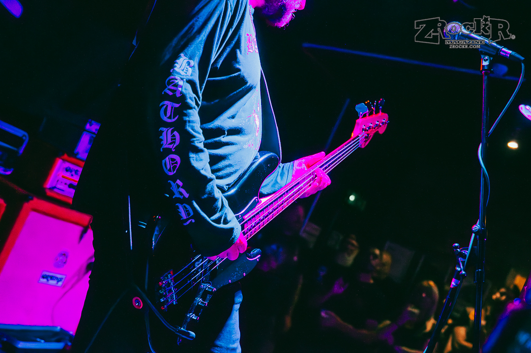 Wolf Bastard was the penultimate act of the night. Wolf Bastard’s set was the set that initially incited the thrashing and the stage diving that would inevitably envelope the entire audience. From shit-talking the audience to passing bottles of wine into the audience, the Manchester blackened thrashers had a group persona of sarcastic jokes and blast beats that helped them to make a clear and obvious line between their set and the others. By the end of Wolf Bastard’s set, the audience had accumulated into one giant ocean of sweating flesh, beer soaked denim vests, and obscure death metal merchandise. People weren’t people anymore, they were just drops of writhing chaos in the tidal wave of bodies that enveloped the stage.