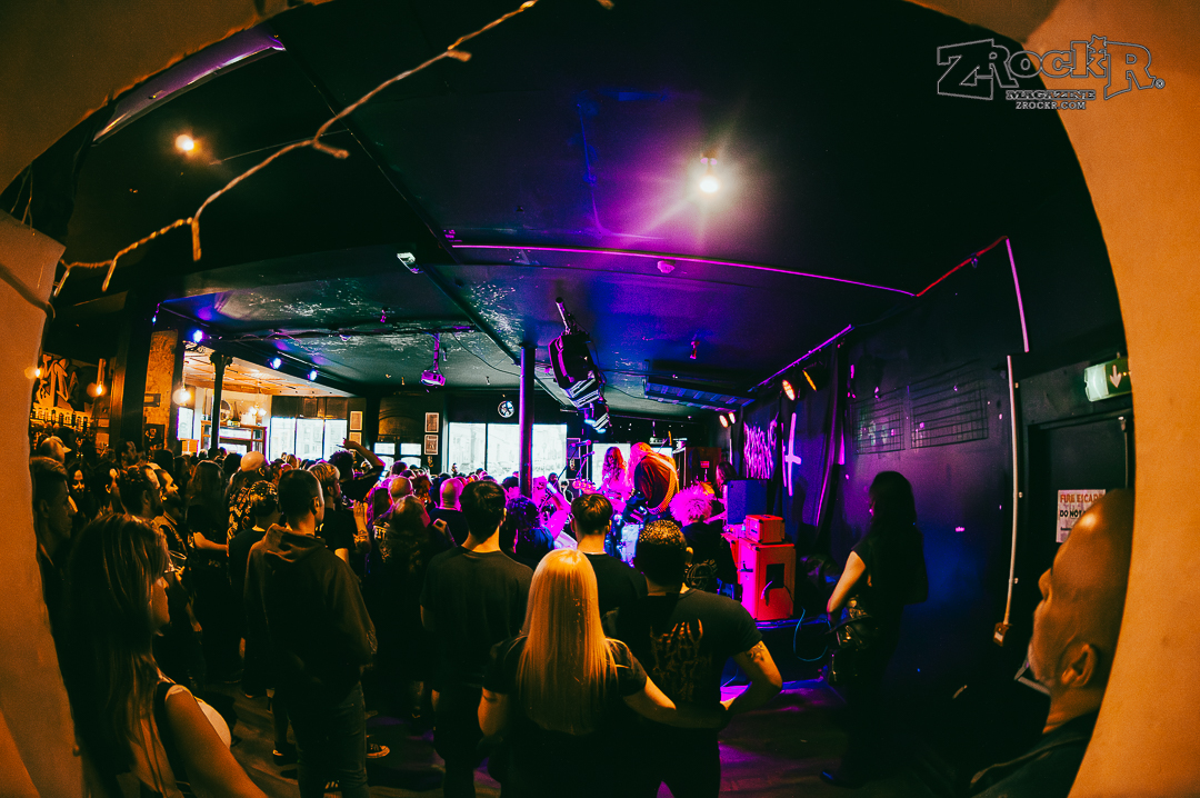 London doesn’t really have venues for heavy acts, they just have bars with stages. At least, that was my experience, and despite it’s small size, New Cross Inn seems to be one of the more popular spots for live music and great beer. The building adorned posters of prior acts such as The Story So Far, God’s Hate, and even older Midnight tour posters. Merch and more alcohol was down the stairs in the cellar-like basement, and right outside of the main room was where the restaurant-style booth seats were. It was a really unique atmosphere compared to most of the venues where I’ve seen Midnight play in the states.