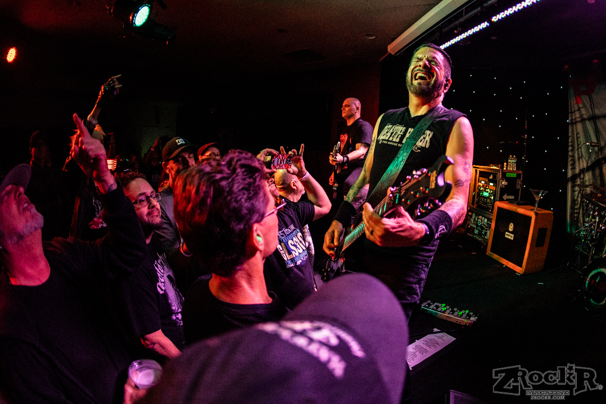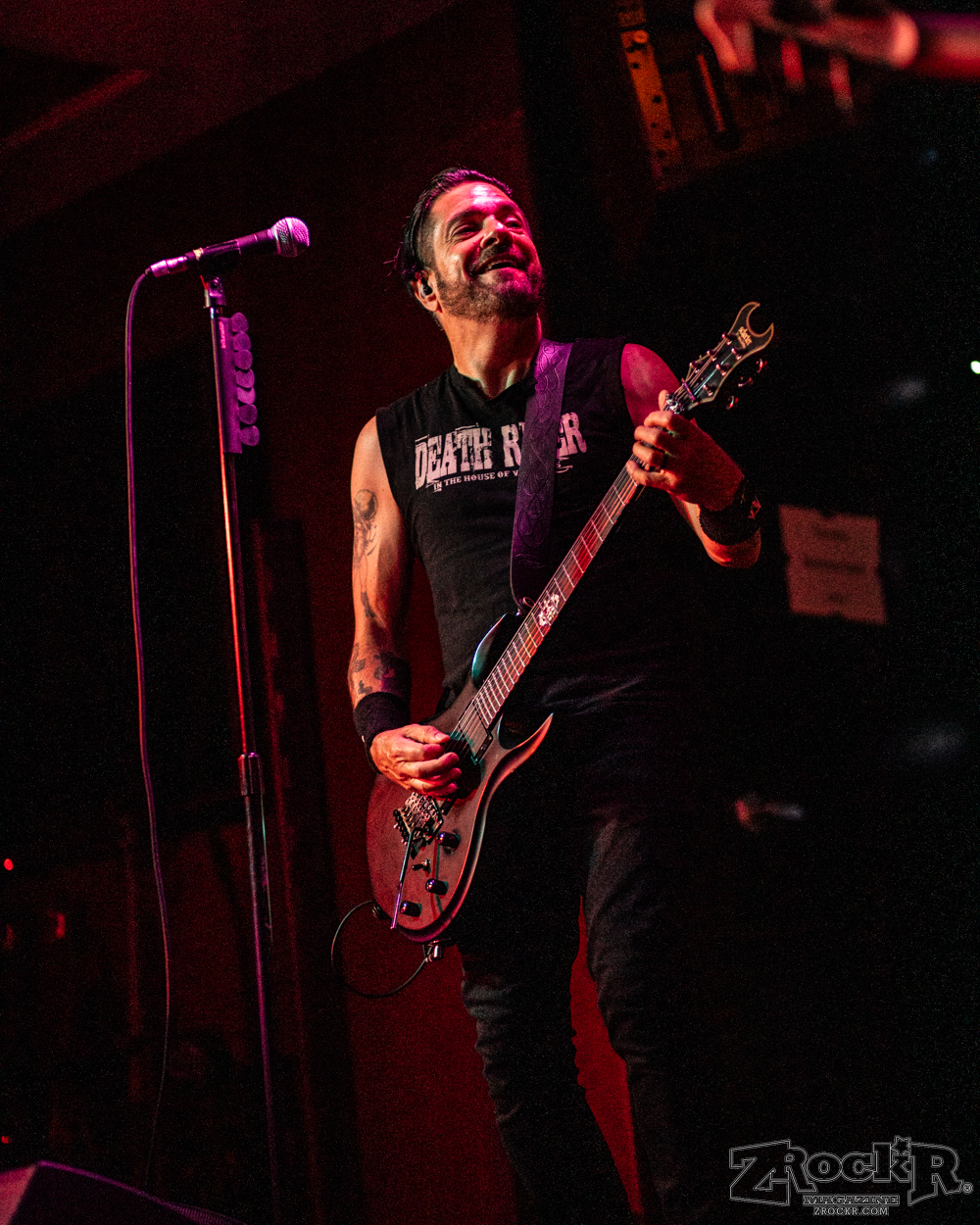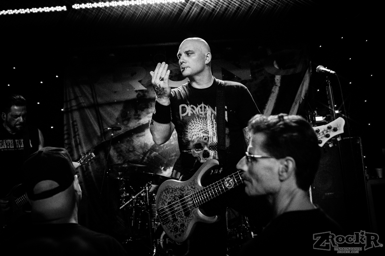 This was my first venture to The Copa Room, and at first glance, the venue is clean, well organized, and very intimate. There’s no barricade, which grants the audience a special kind of up close performance. (As someone who’s worked many shows that did not have barricades, this is never a problem for me. I enjoy moving through crowds and finding photo framing that may not be conventional for the regular person.) This venue is listed as having a 180 standing room capacity, so this made Prong’s performance all the more cool. To see such a landmark band of the 90’s groove/thrash/industrial sound in such a small place is a rarity these days.