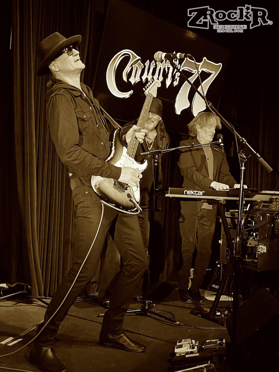 But of course, it’s Count’s 77 this Vegas crowd came to see on a Saturday night. The band, fronted by Vamp’d/Count’s Kustoms owner Danny “The Count” Koker, also includes the likes of guitarists John Zito and Stoney Curtis (both of whom have bands and recording careers of their own), bassist Barry Barnes (who also plays in Curtis and Zito’s respective bands), drummer Jeff Tortora (Tinnitus, Blue Man Group), and usually keyboardist Tommy Paris (formerly of Britny Fox). This was the first Vegas gig for the group since Vamp’d closed down, and rock and roll fans in Sin City were eager to see their hometown heroes take to the stage once again. To date, the group has released two studio albums and one live album, with their releases featuring the production work of legendary Shrapnel Records founder Mike Varney, who was in attendance on this evening.