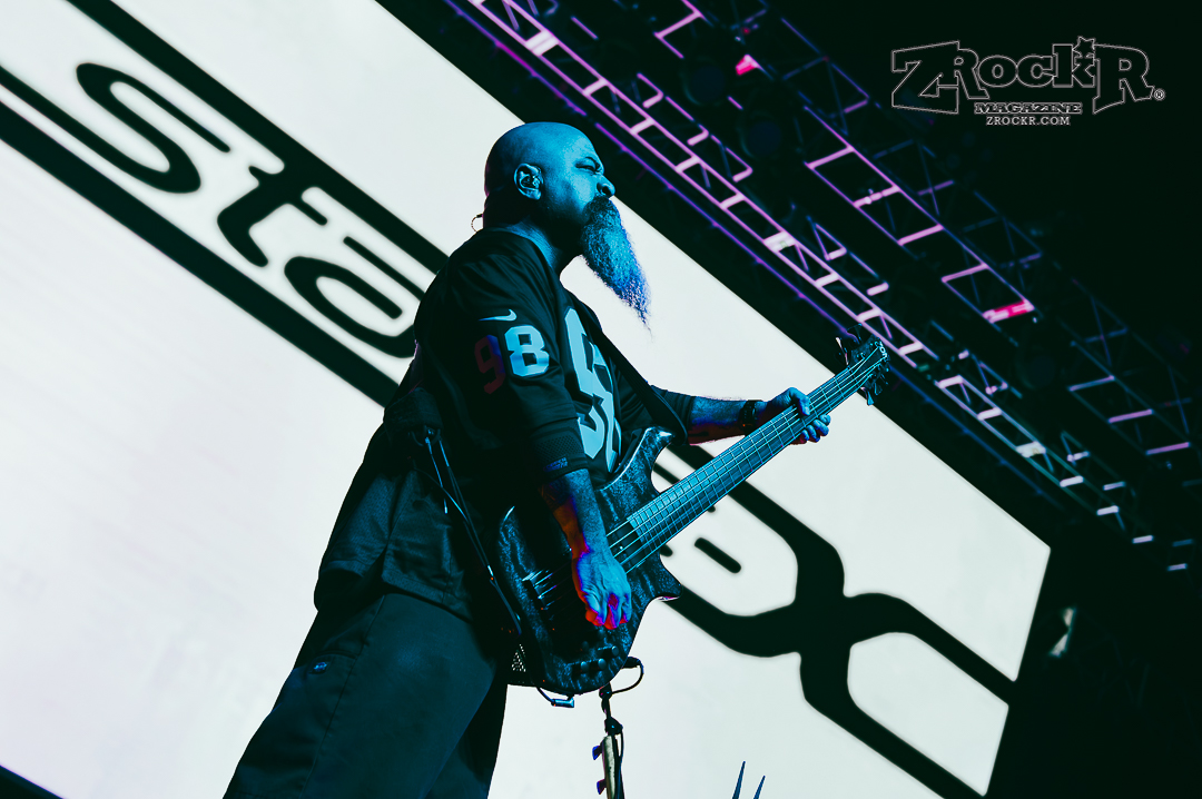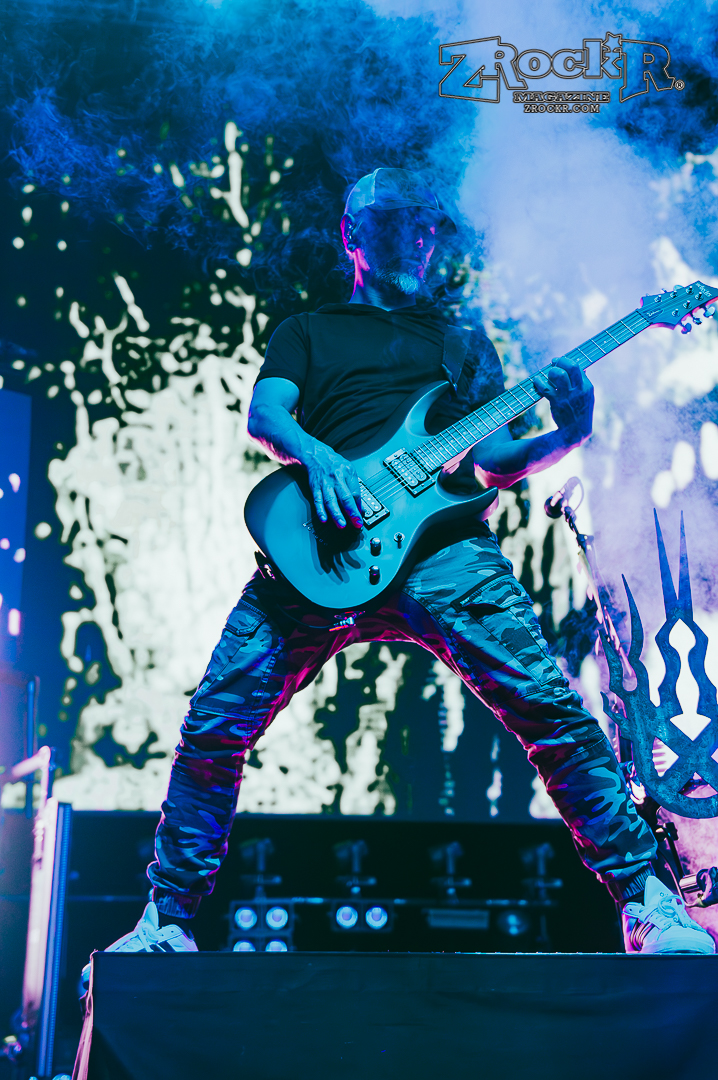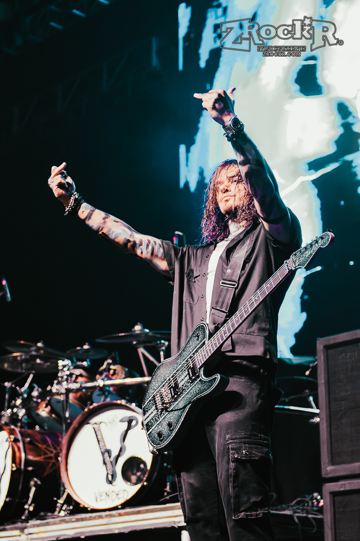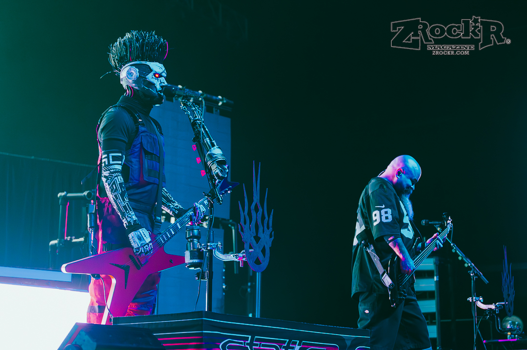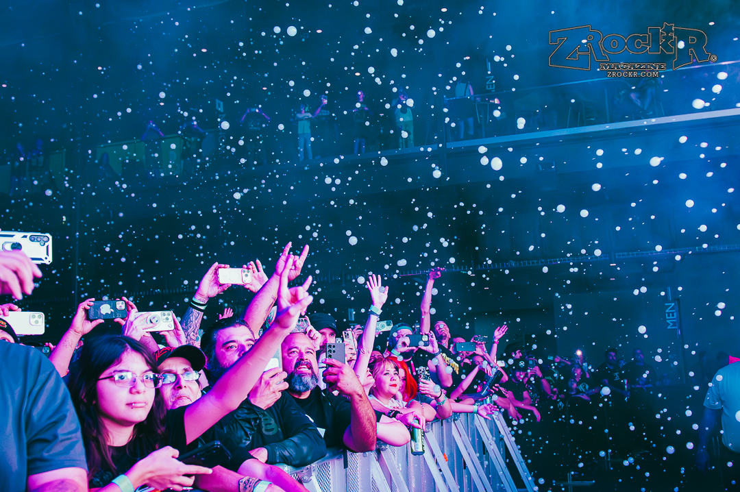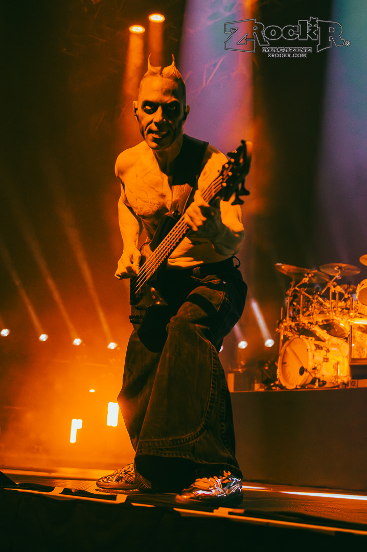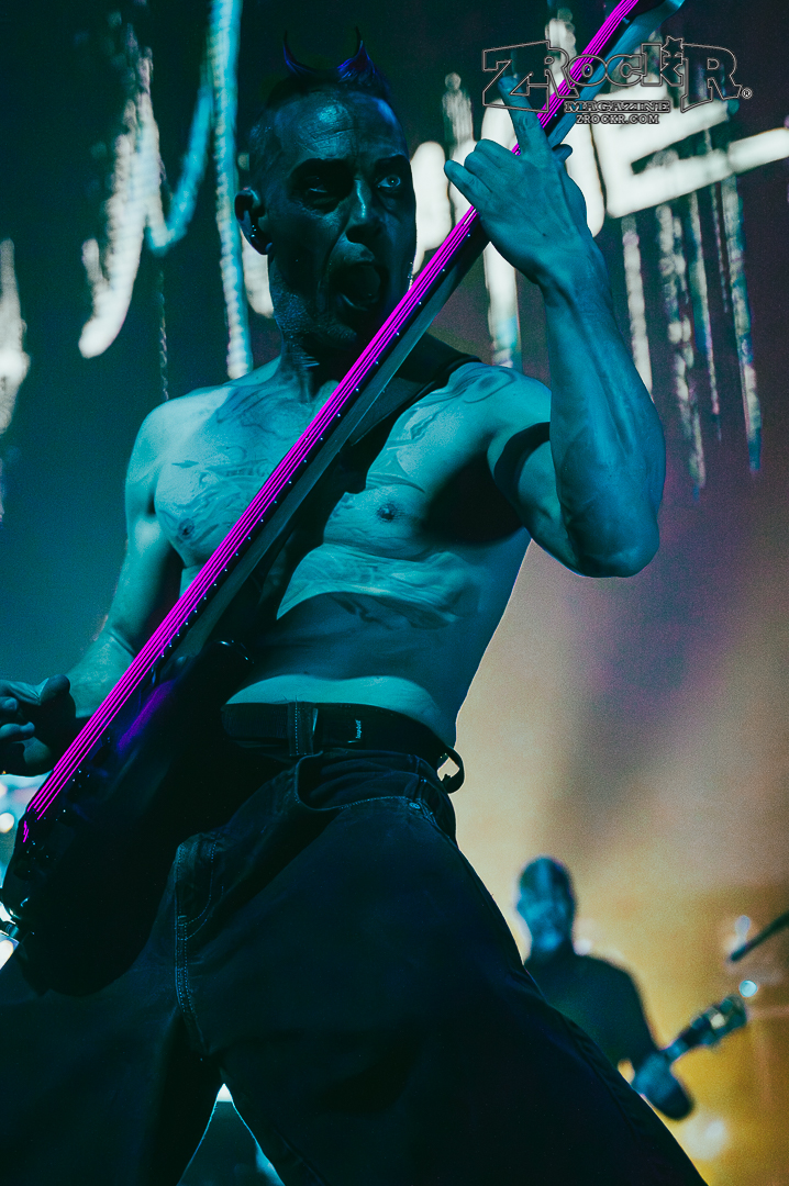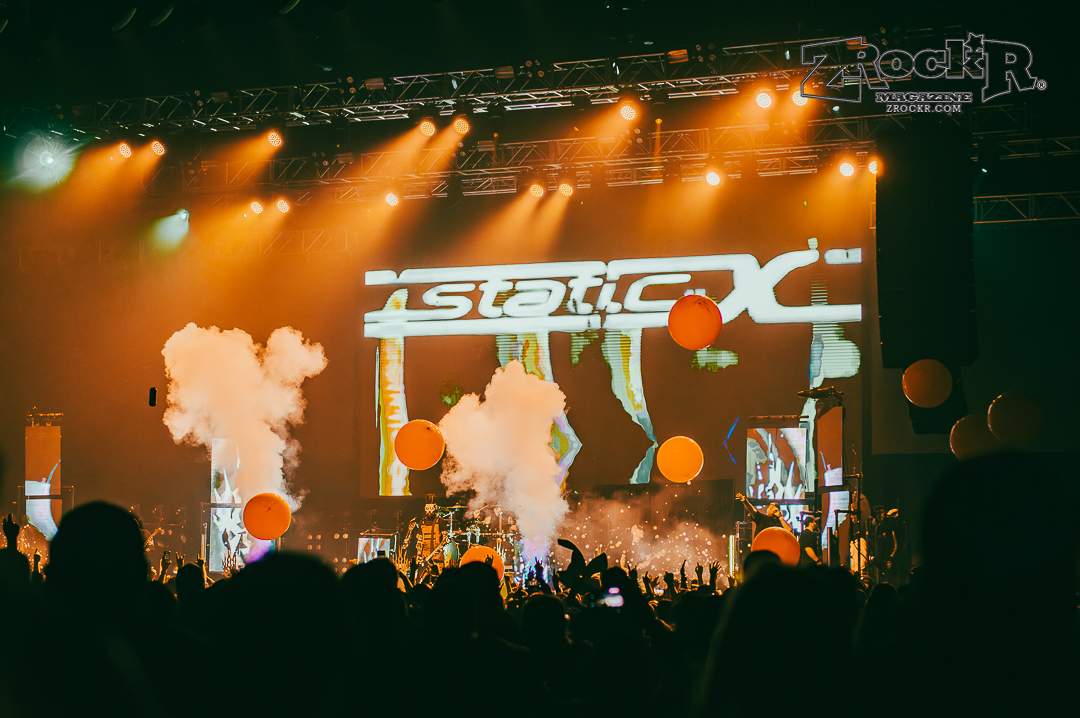 Static-X marked this night to make their return to San Antonio as they’re celebrating the 25th anniversary of their debut, seminal album, “Wisconsin Death Trip”. A beloved album that shot the band to the top of their genre, by the time they came out to play, the arena was packed to the brim in anticipation of the bands signature “Evil Disco” sound – a blend of industrial rock, electronic dance, and nu-metal. Unsurprisingly, the energy took effect immediately, inciting frenzies of crowd surfers and moshers both young and old to “Push It”. Crazy strobes, pulsing LED screens full of nostalgic clips, characters in costume shooting beach balls and smoke, a bubble machine, and an endless setlist of classics, the room got rowdy fast and never stopped.