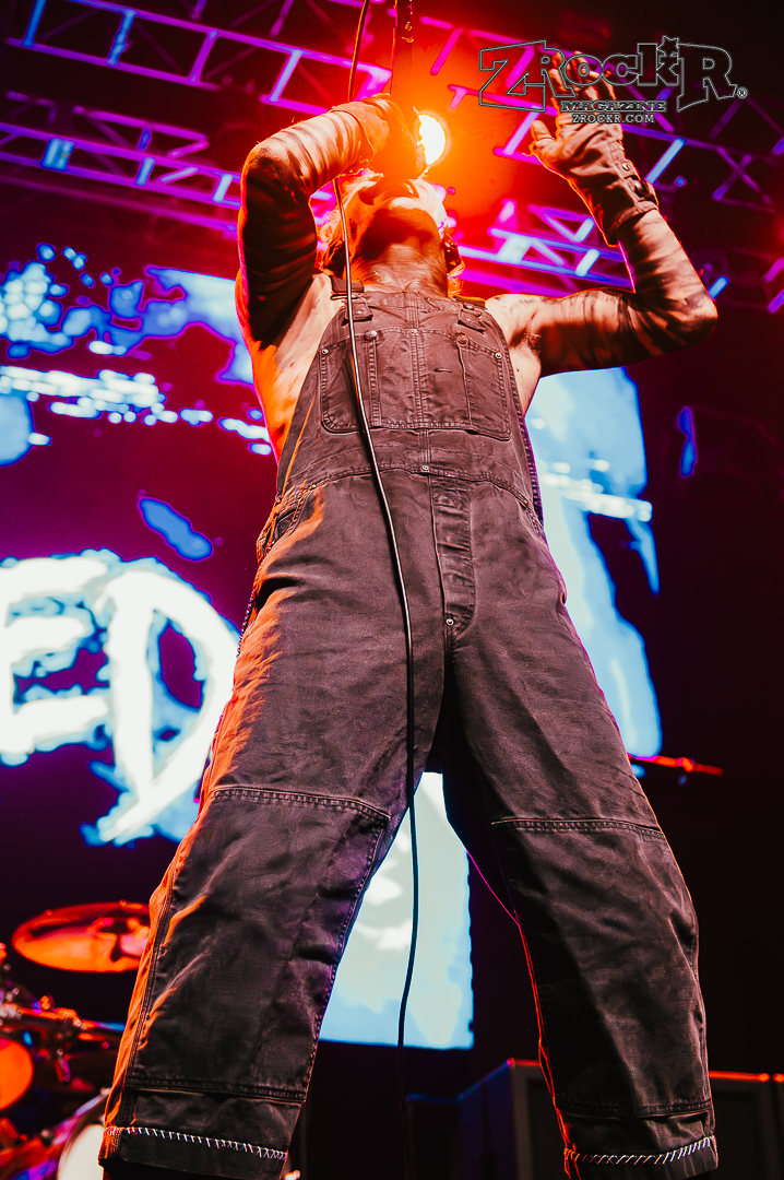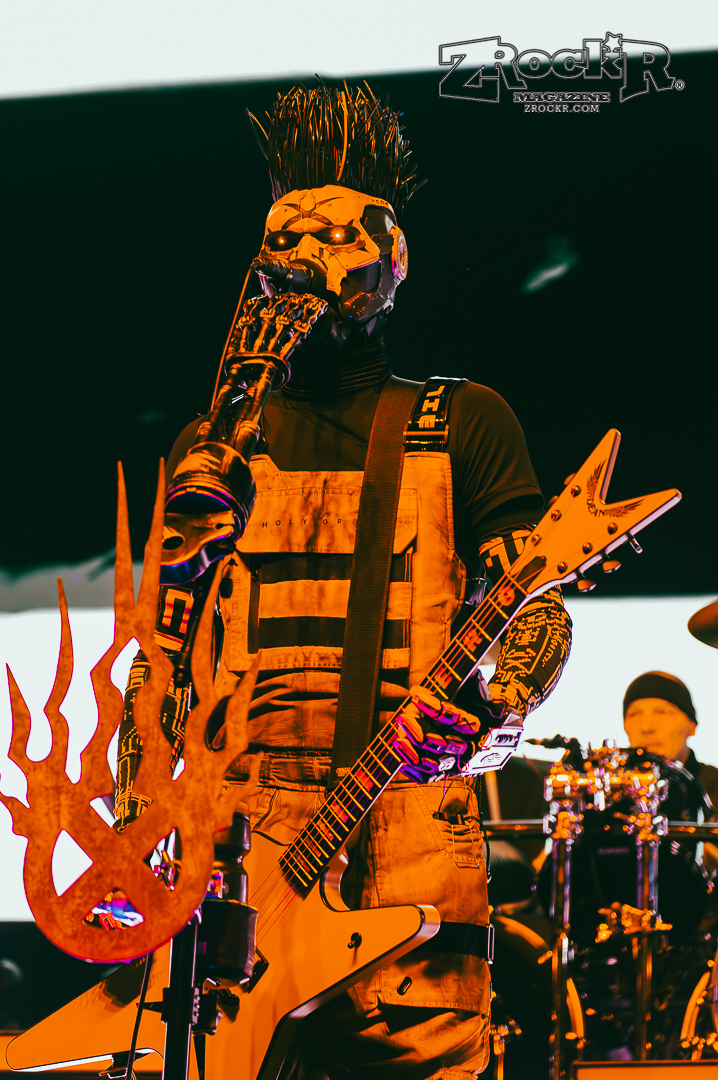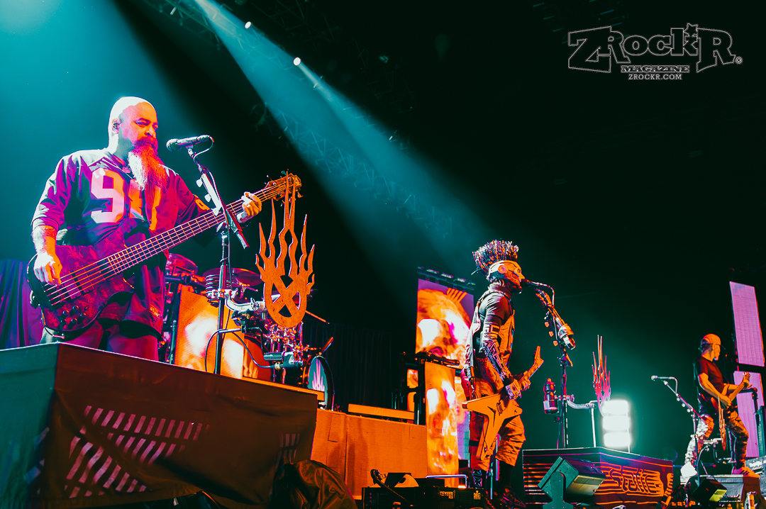 Mudvayne – or, MuDvAyNe for the purists out there – wrapped their stage in lights and set the place ablaze. The dirty rockers from Illinois celebrated the 25th anniversary of L.D. 50 by donning their classic smudged makeup, bloody overalls, and bizarre body-language, and playing a show that the sold-out arena would never forget. Check out this set list!