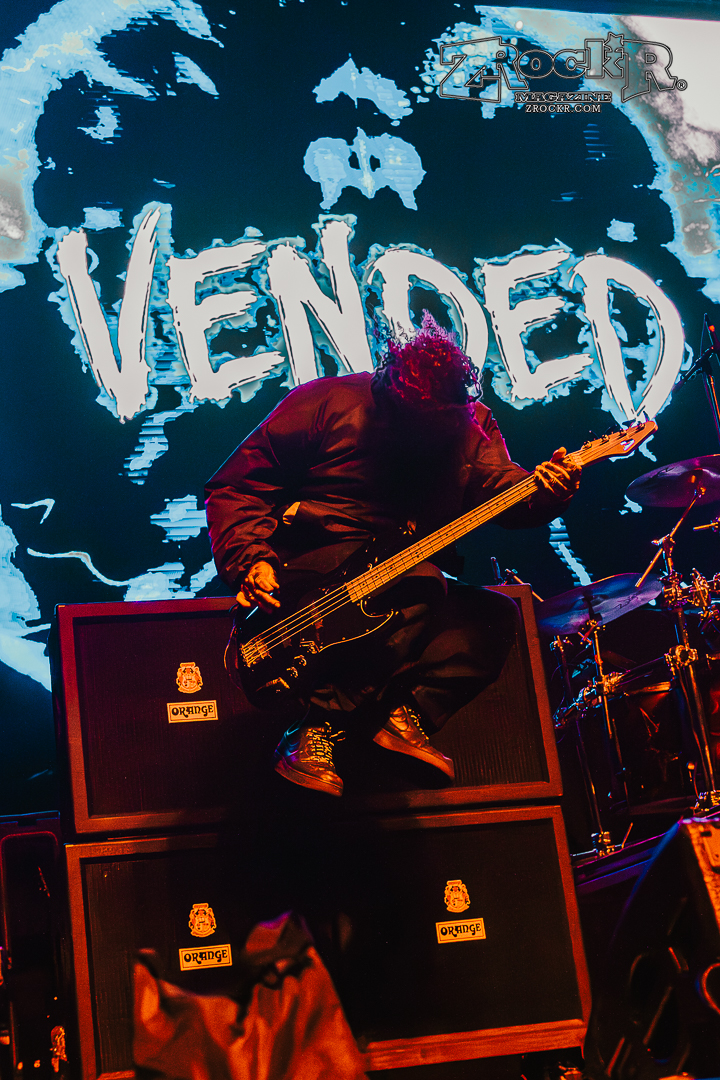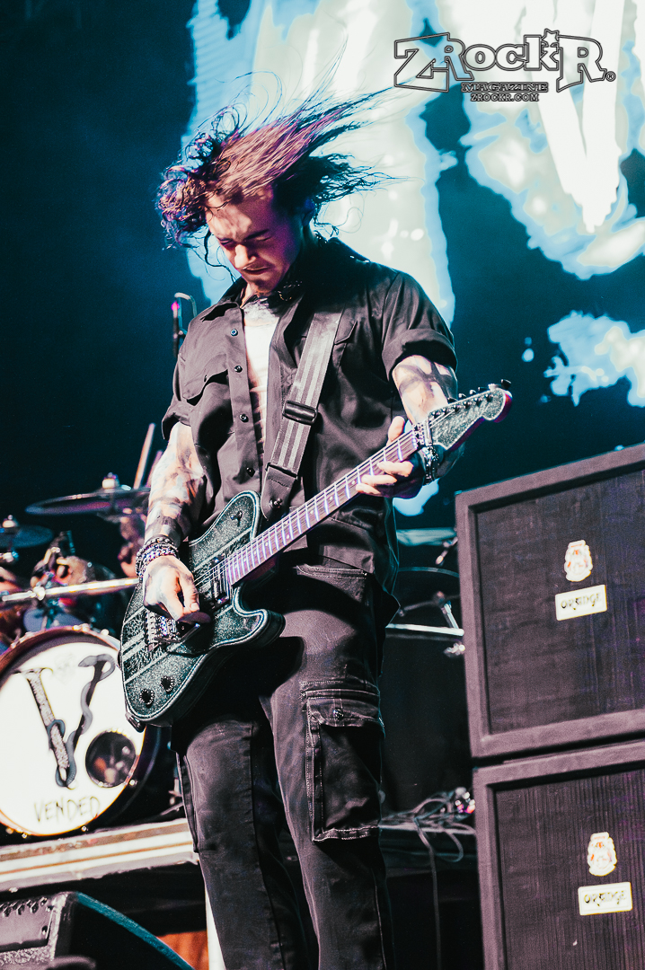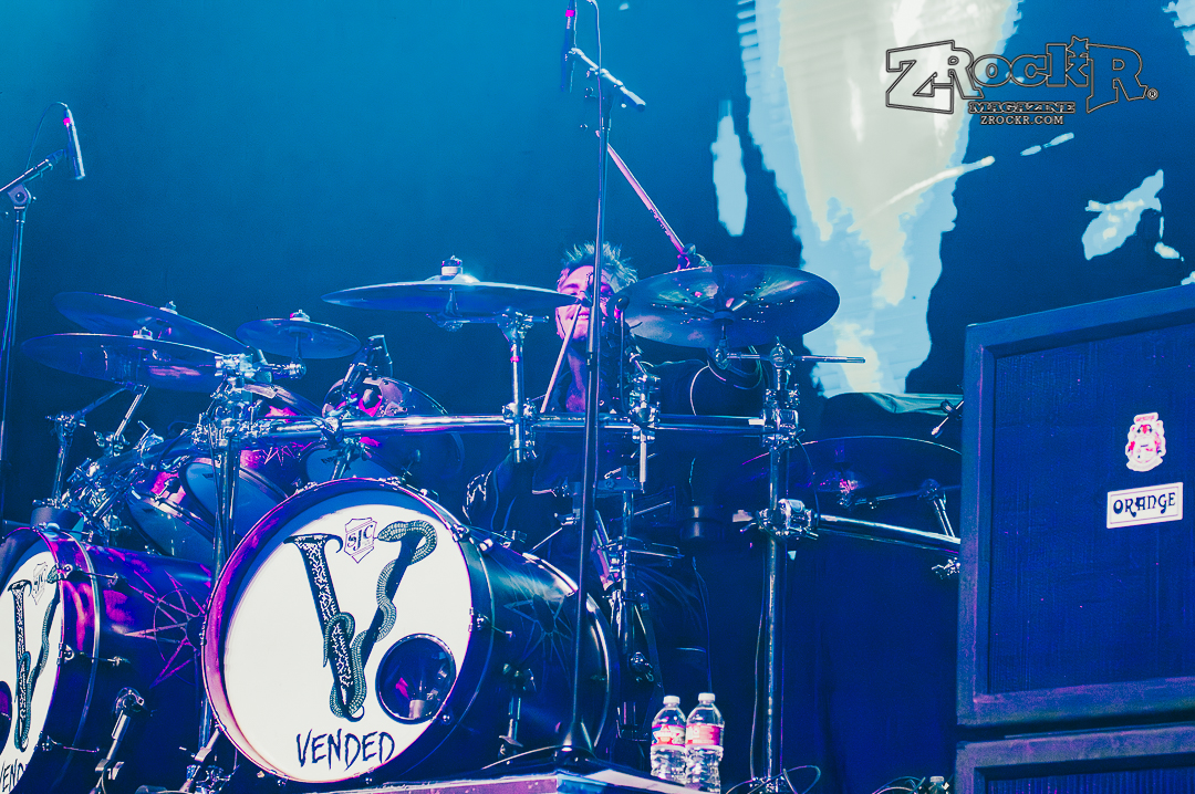 Vended started the night, a small-city band that hails from Des Moines, Iowa, they played an insane set full of face paint, gnarly growls, and some pretty positive messages behind their lyrics. The group – made up of Griffin Taylor, Simon Crahan, Jeremiah Pugh, Connor Grodzicki, and Cole Espeland – took the sold out arena by storm, performing a truly impressive set covering nearly all of their short lifespan. It’s rare that the first band of the night gets the first mosh pit AND first crowd surfer, but that’s just Vended.