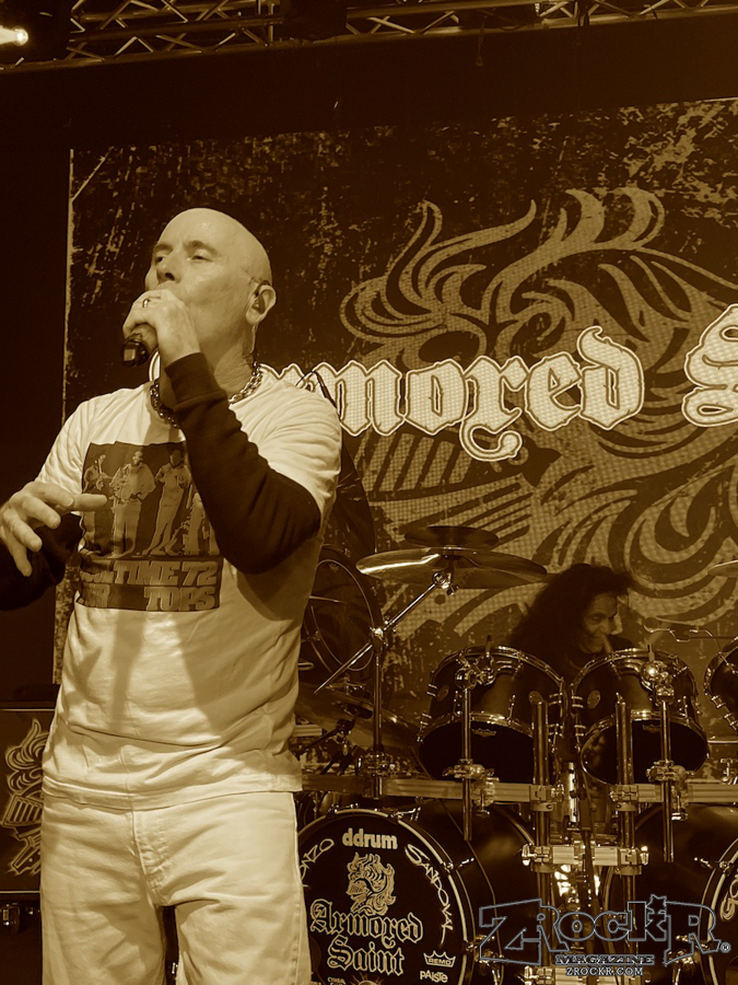 After a lengthy time between sets, Armored Saint took the stage. Remarkably, this is one of those bands that has kept most of their classic lineup over the years. The band consists of vocalist John Bush (who has also sung for Anthrax), Joey Vera on bass, Gonzo Sandoval on drums, and guitarists Phil Sandoval and Jeff Duncan. Original guitarist Dave Prichard passed away in 1990.