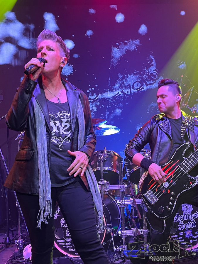 One World (R)evolution started the show. The support act was one that I’d never heard of before, but I was certainly eager to see who Armored Saint brought along for support for this gig at The Space. They were certainly an interesting group to kick things off, featuring three younger and quite competent musicians with a woman fronting the group who looked like she had a generation or two on the other members, but quickly proved herself no slouch – able to go from more melodic to guttural vocals without warning! They rocked the audience and got them warmed up for the headliner. Personally, I’d love it if they’d add one more member to the band who could play keyboards/additional instruments, so they didn’t have to use pre-recorded elements for aspects like this that were utilized on a few tracks. But I’ll be keeping my eye on the band and wishing them well on their ascension!