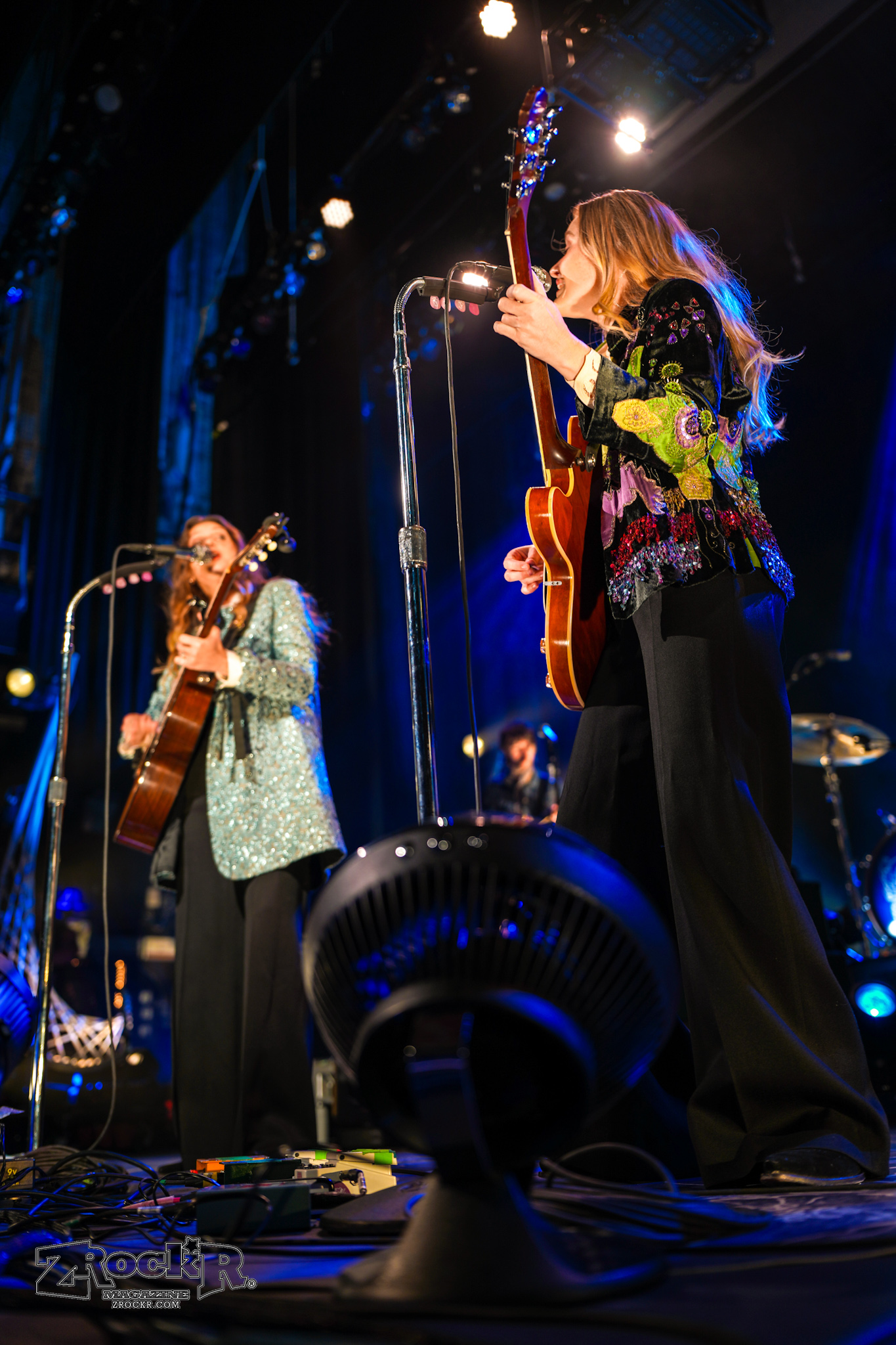 The set rolls smoothly between upbeat songs like “What if Feels Like” and “Next to Nothing” from Silver Deliverer and soft, sweet songs from 2021’s A Touch of the Beat “Slow Dancing” and “Hold Out.” Fans (me) could be seen getting emotional during the transition into a beautiful outro of “No One” from “Into the Rush,” the first peek into the 20-year celebration. Keeping it slow and sweet, A&A brought Amanda Shires on stage to play fiddle while they performed “Blue Dress” from 2023’s With Love From album.