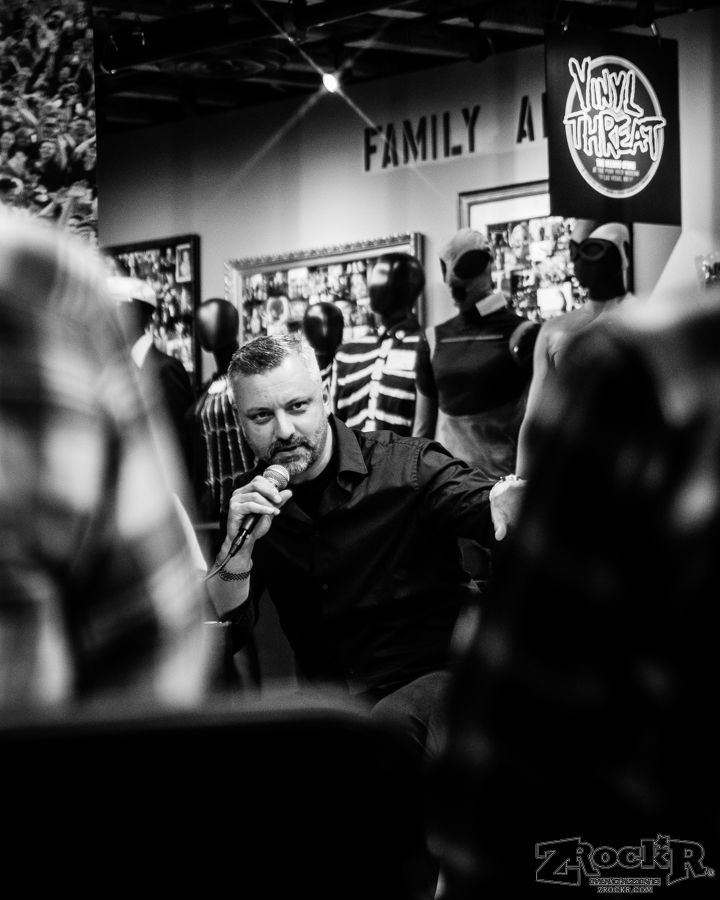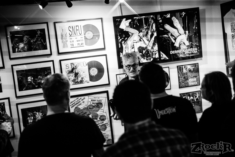 Traffic was a nightmare this day, so I unfortunately missed the performance in the Pennywise Garage- but I did get the pleasure of seeing Brent and Mark Belke talk to an intimate crowd about the display set up on the upper floor, as well as the Q&A, which I also found very interesting. S.N.F.U. are before my time, so I admittedly don’t know too much of their background, but I very much enjoyed listening to the guys talk to the fans who are- some of whom traveled internationally for this special event! Pretty fucking cool. A story that stuck out to me was about New York photographer Diane Arbus, who the band had tried relentlessly to get a photo of hers licensed to no avail. Her estate doesn’t allow that type of usage so they’d have to go a different route with design and imagery.