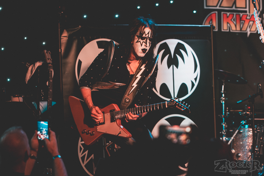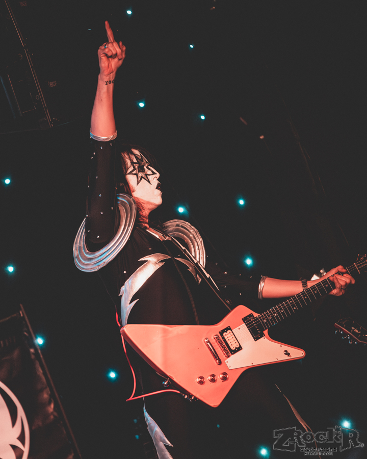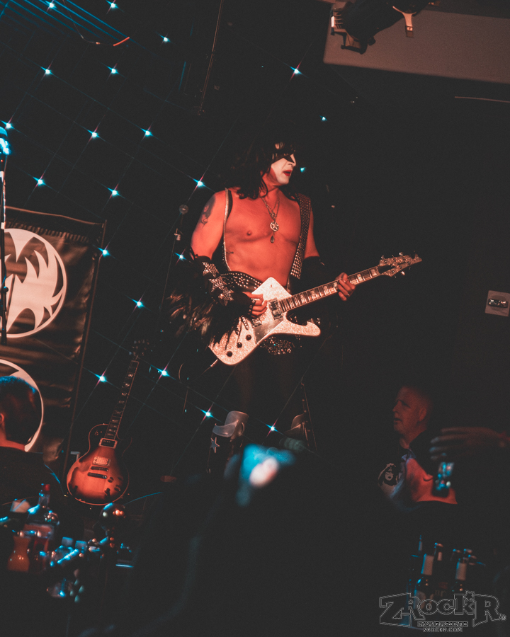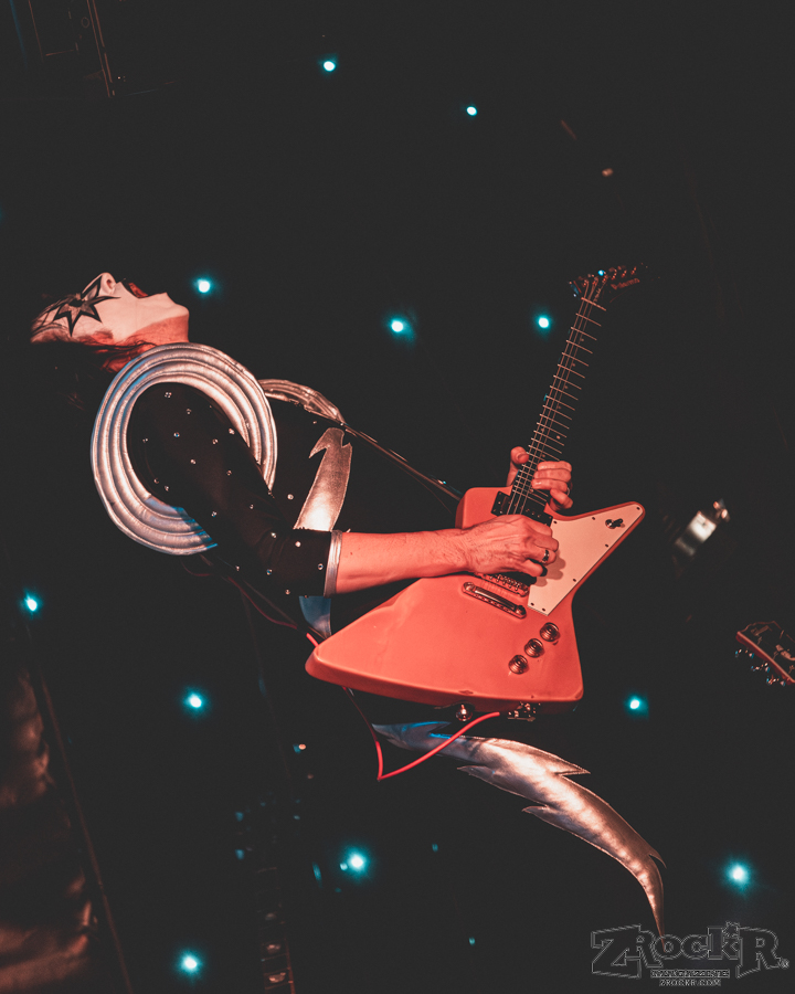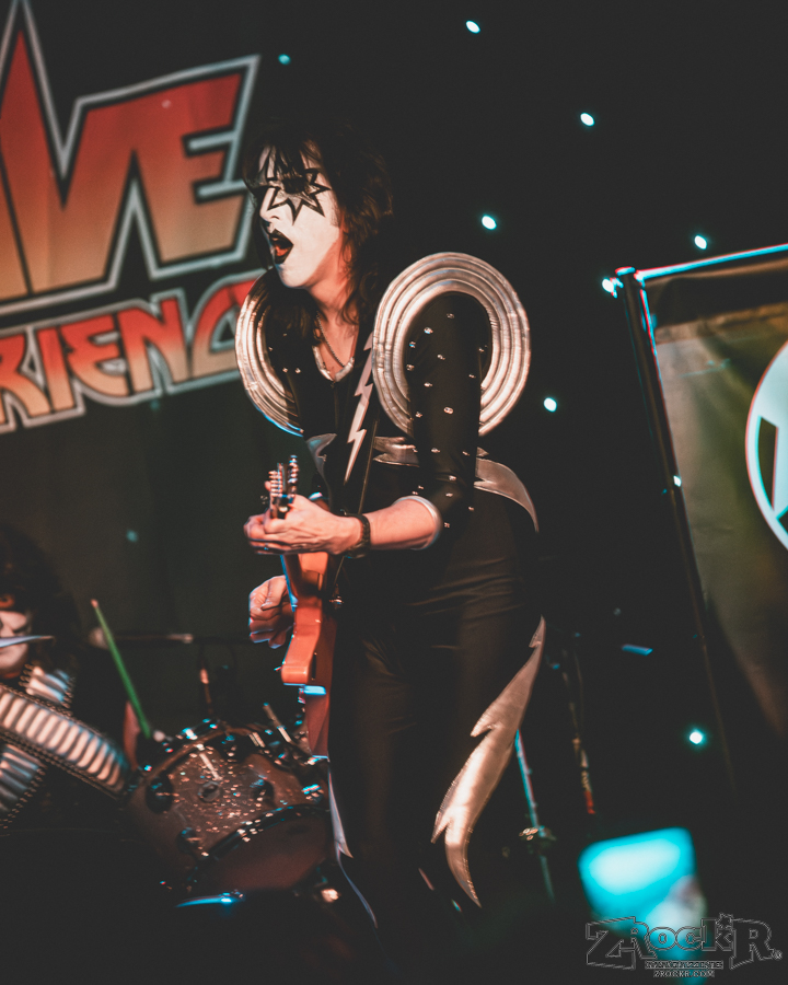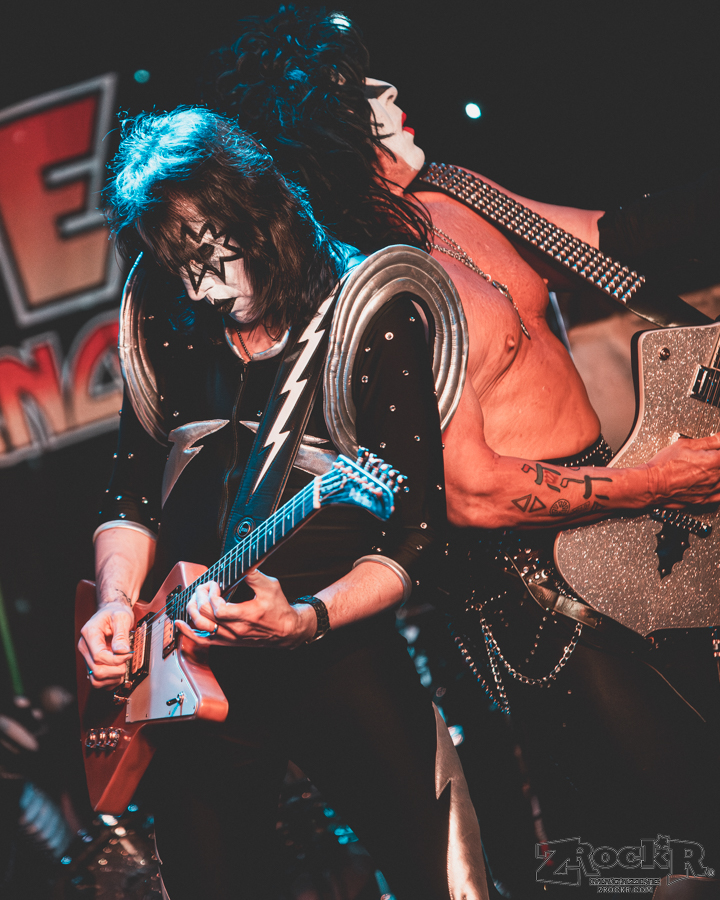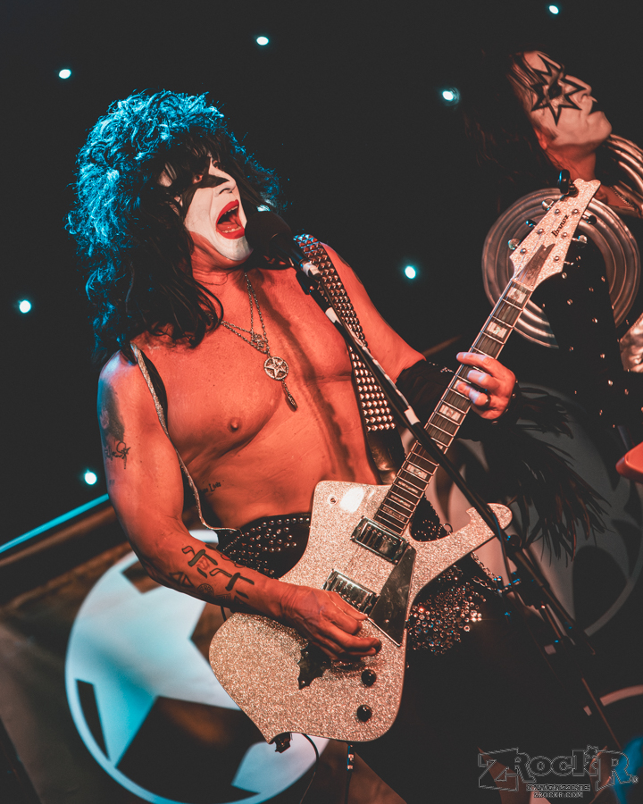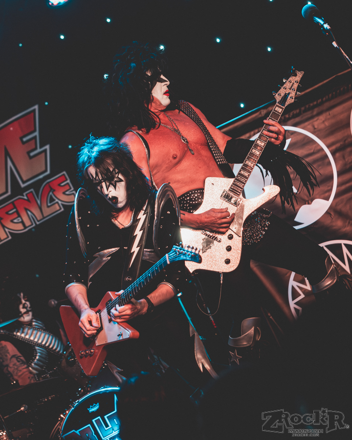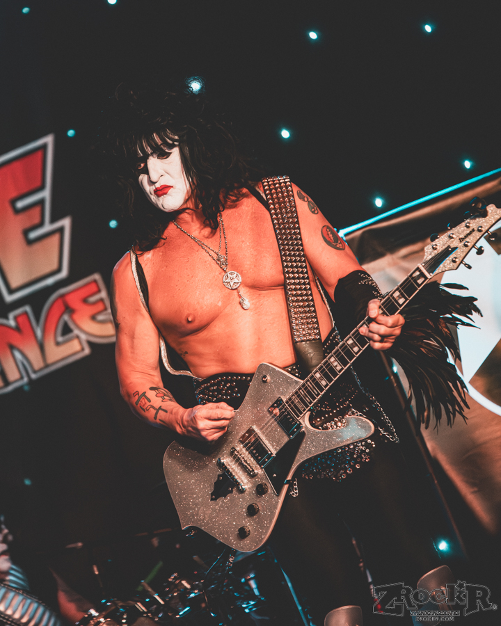 Unsurprisingly, the costumes, musicianship, and on-stage chemistry weren’t too far removed from what one would’ve seen at a Sin City KISS or Generation KISS concert, but that’s not a bad thing. The setlist mainly featured tunes from the classic 70s makeup era of the band, with the group giving powerful renditions of them. It’s tough to pull off a classic-style KISS show in a club/on a small stage, but these guys certainly make the best of what they can. While the Tuscany is largely a “sit down” venue with tables and chairs, it didn’t stop fans from crowding the center near the stage to rock out to the band’s sounds.