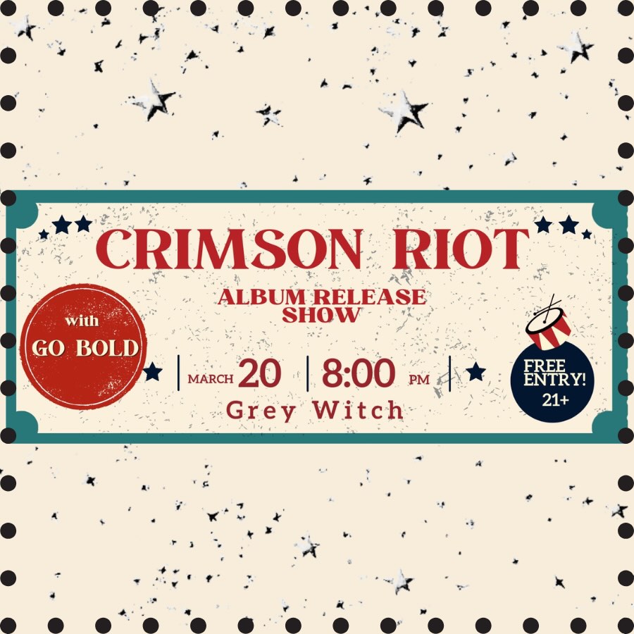 Enough of my rambling. The record comes out on Friday, March 20th, and the band will be doing their album release party at 8 pm over at Grey Witch in Henderson, NV. As soon as this is available to listen to, I highly recommend it. Go to the show if you can. Crimson Riot doesn’t pigeonhole themselves into just one base line of punk, which I appreciate. I want variety. I don’t want the same thing over and over, because it becomes stale, and Third Time’s A Charm is anything but stale. It lives up to the classic saying, because this is the best Crimson Riot record yet.