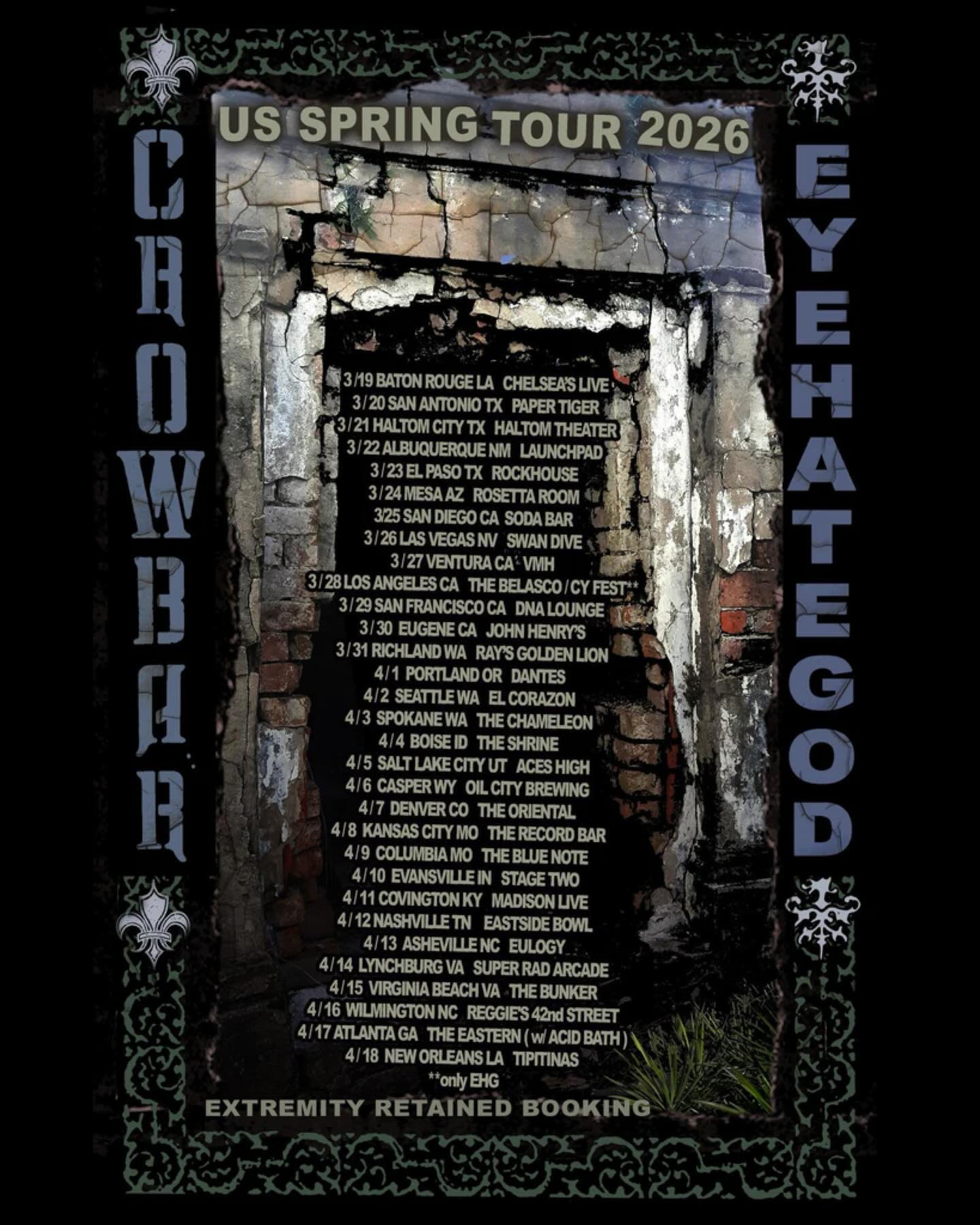Thursday, March 26th, 2026 – Going out on the town for some Louisiana metal has become a sort of time-honored tradition in the Pretre-Ware household. Like a box of my go-to comfort dish to make at home: a box of Zataran’s dirty rice with added bell peppers. Except it’s louder and (often but not always) slower. Far more references to misery, drug additction and social decay. It’s hardly anything like dirty rice now that I think about it. Never mind that – let’s talk about the show and not my stomach.