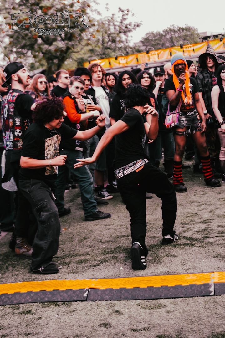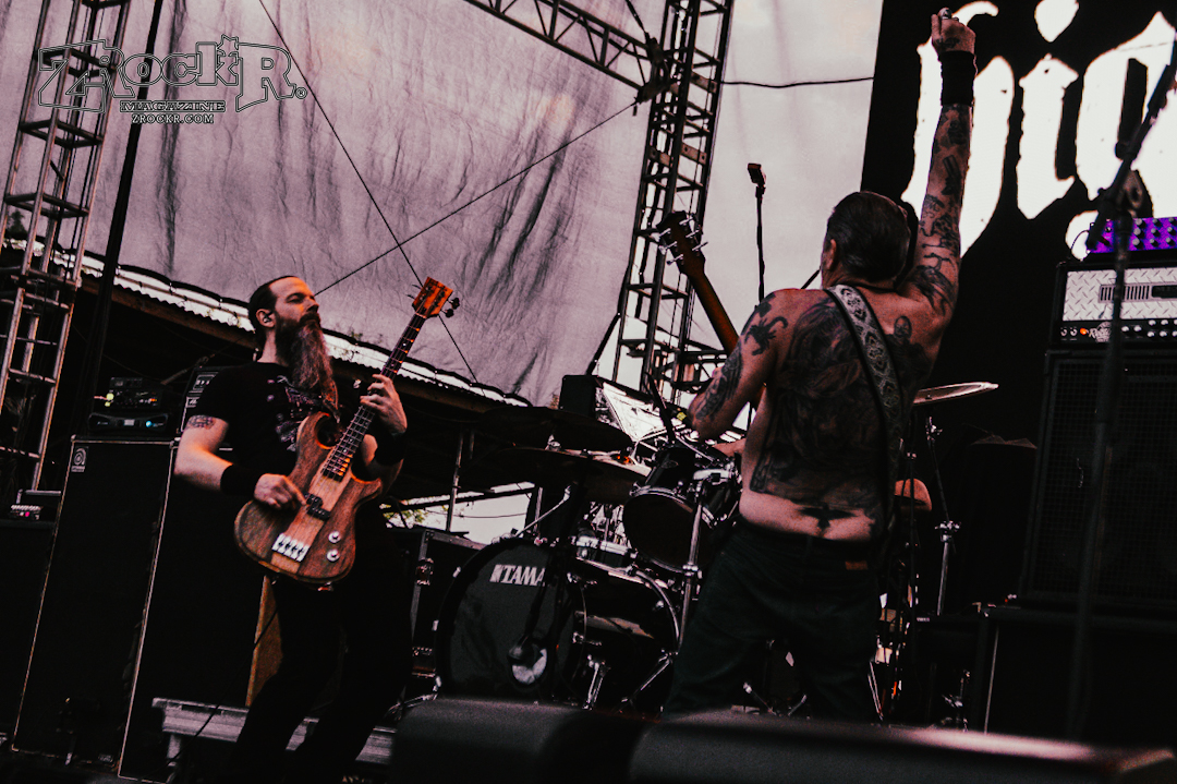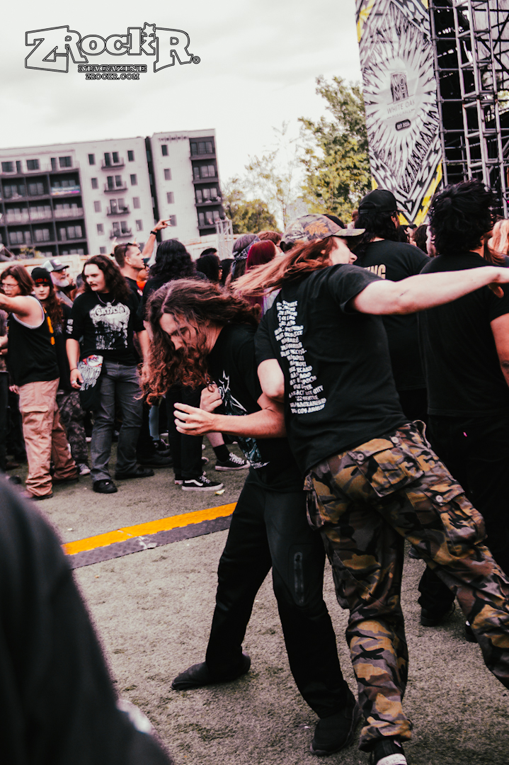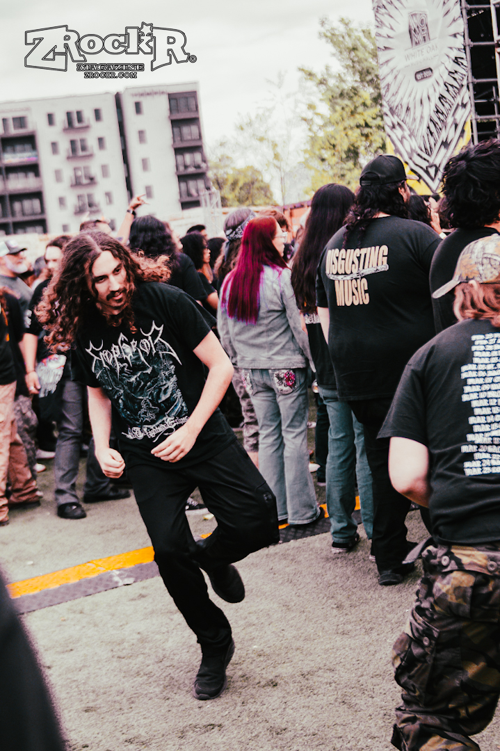 There’s a belief that black metal must remain dark, hidden under the disguise of the nighttime eclipse, guided by candle, moon, and foggy lit paths. Those are notions of ethos, invented by the Northern artists of old. Necrofier is true USBM. Southern, primal, forged beneath blistering bright white suns as the burnt, greasy skin of their arms and faces meld with the leather they adorn. This is American savagery, where moonlessness takes the desert for only a few hours each night, where the blackness is found in roadkill, in animalistic tendencies, in the need to hunt or be hunted; under the ruthlessness of the sun, the only place darkness is found is within each other. Needless to say, their performance was legendary and absolutely brutal. Though seeing ritualistic black metal in broad daylight is strange, Necrofier’s sunburnt aesthetics work perfectly beneath the setting sun. They recently dropped a brand new album called Transcend Into Oblivion, and it’s easily one of the best black metal releases of the year. Check it out on all of your favorite streaming services, and buy a physical copy from their merch store.
